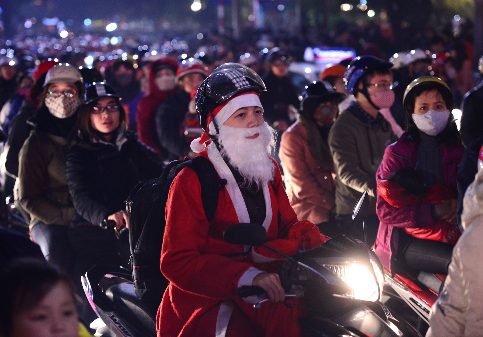 | "Ông già Noel" chen lấn giữa dòng người. Ảnh: Tuấn Mark. |