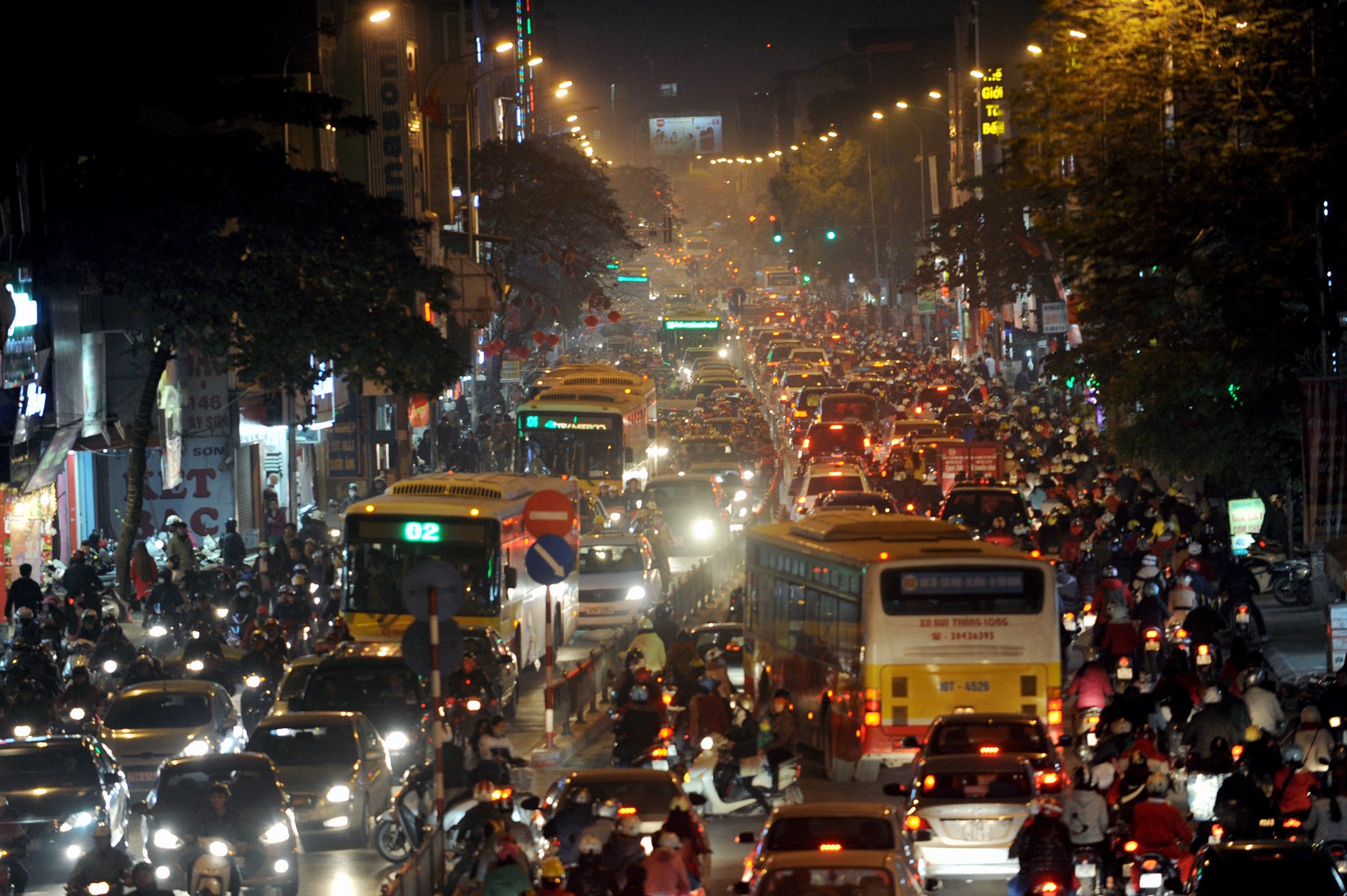 | Tại Hà Nội, phố Tây Sơn và Nguyễn Lương Bằng lâm vào cảnh ùn tắc khi dòng người ùn ùn kéo về phía trung tâm thủ đô. Ảnh: Hoàng Anh. |