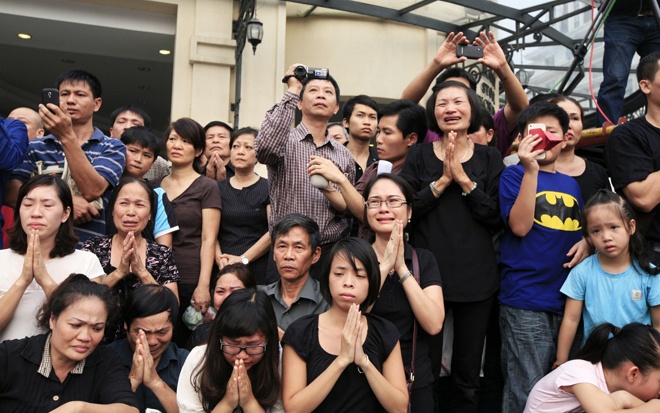 Họ quỳ vái và khóc khi đoàn xe chở linh cữu đi qua.