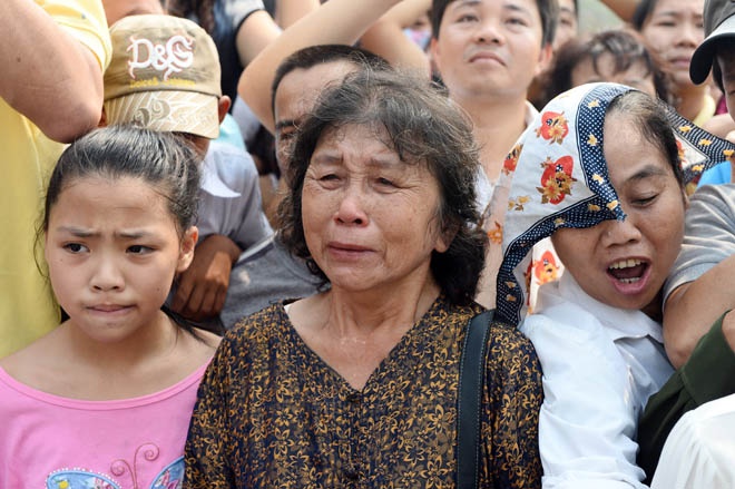 Một người phụ nữ đứng trước cửa sân bay khóc nức nở suốt nhiều giờ đứng chờ. Phía sau nhiều người chen lấn mong muốn đứng lên phía trước để được nhìn thấy linh cữu Đại tướng.