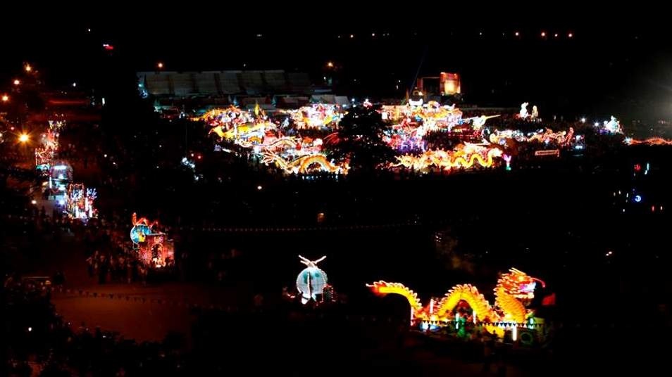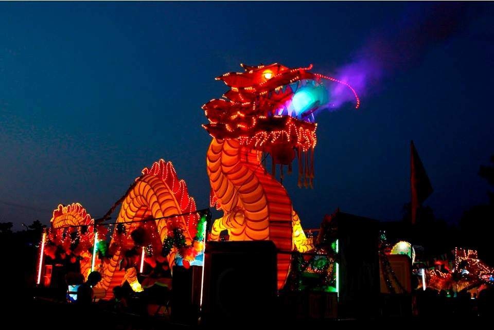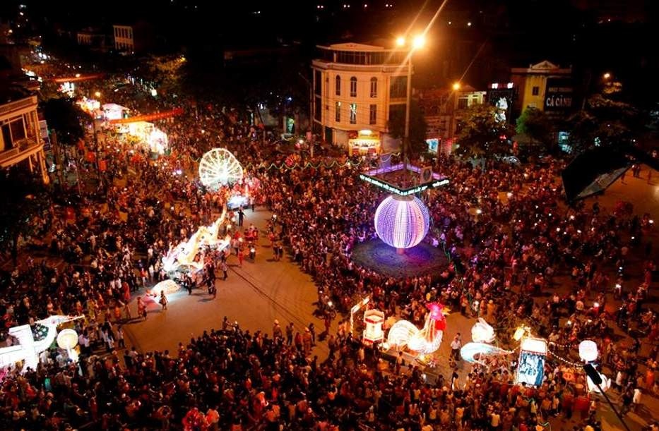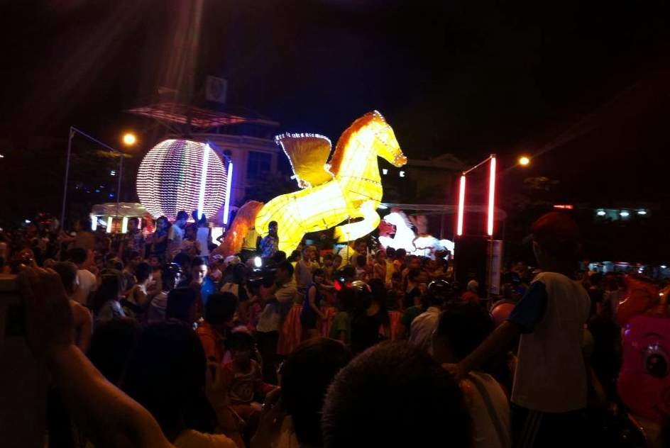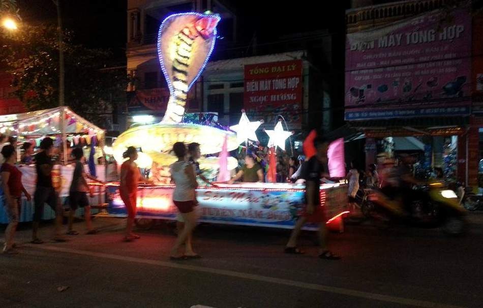 Từ chập tối, trên khắp các nẻo đường đổ về trung tâm hội nghị tỉnh, người dân nô nức kéo mô hình của khu phố, thôn xóm mình đến tham dự lễ hội.