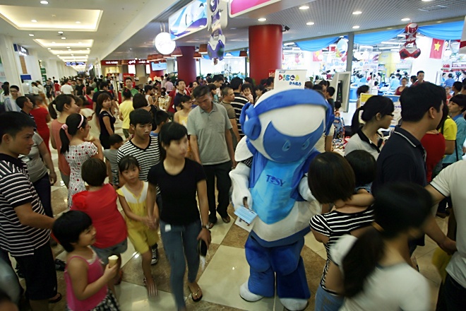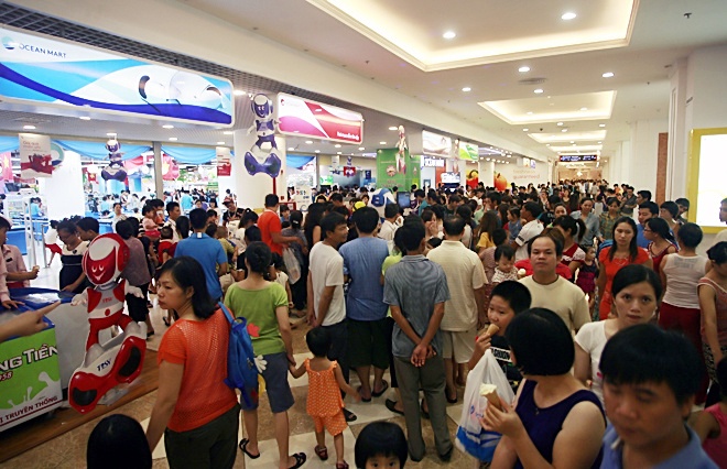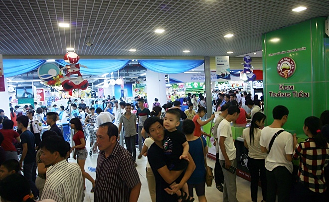 | Khu vực siêu thị cũng đông đúc cảnh mua hàng tiêu dùng. |