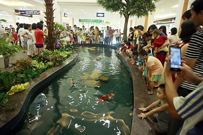 | Những khu tiểu cảnh như thác vũ môn và ngắm cá Koi được nhiều du khách chụp ảnh. |