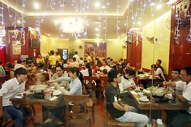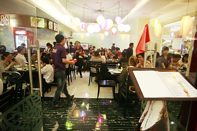 | Hầu hết các quán ăn đều kín chỗ ngồi. |