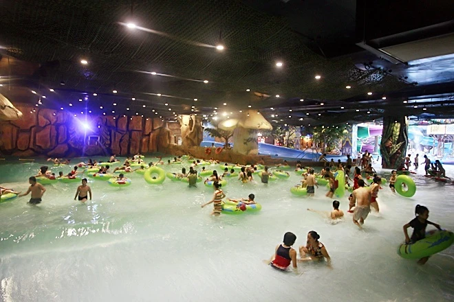 | Công viên nước bên trong Royal City may mắn không rơi vào cảnh quá tải do thời tiết Hà Nội mát mẻ. |