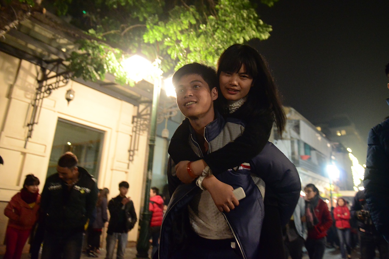 Cặp trai gái cõng nhau dạo chơi. Ảnh: Tuấn Mark.