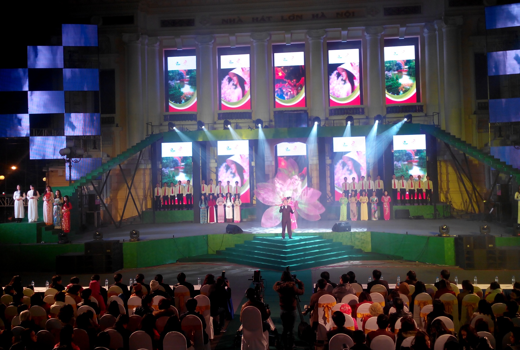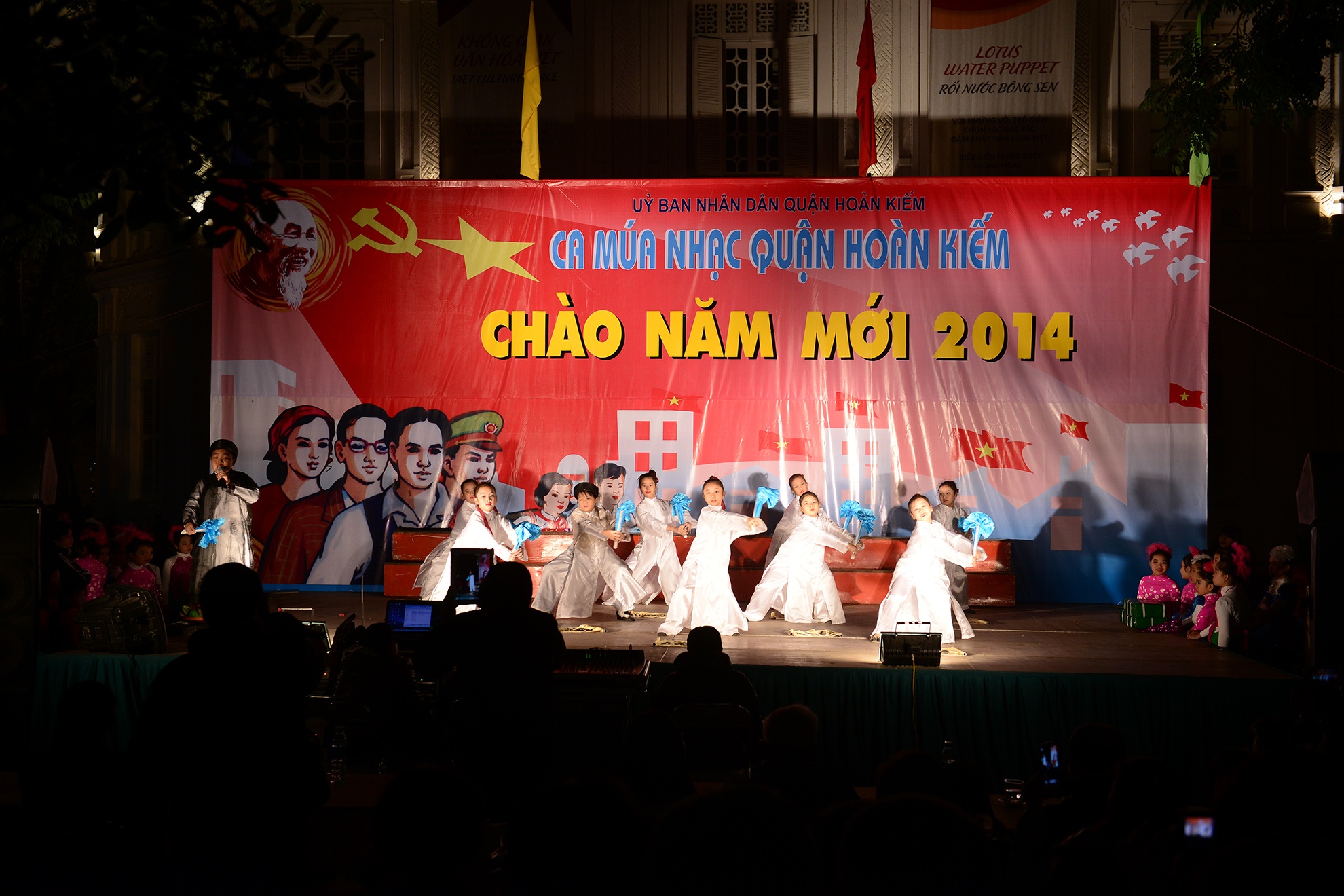 Chương trình văn nghệ trước cửa nhà hát Lớn Hà Nội chào mừng năm mới diễn ra với sự tham dự của các đoàn nghệ thuật và ca múa nhạc Trung ương. Ảnh: Viết Mạnh.