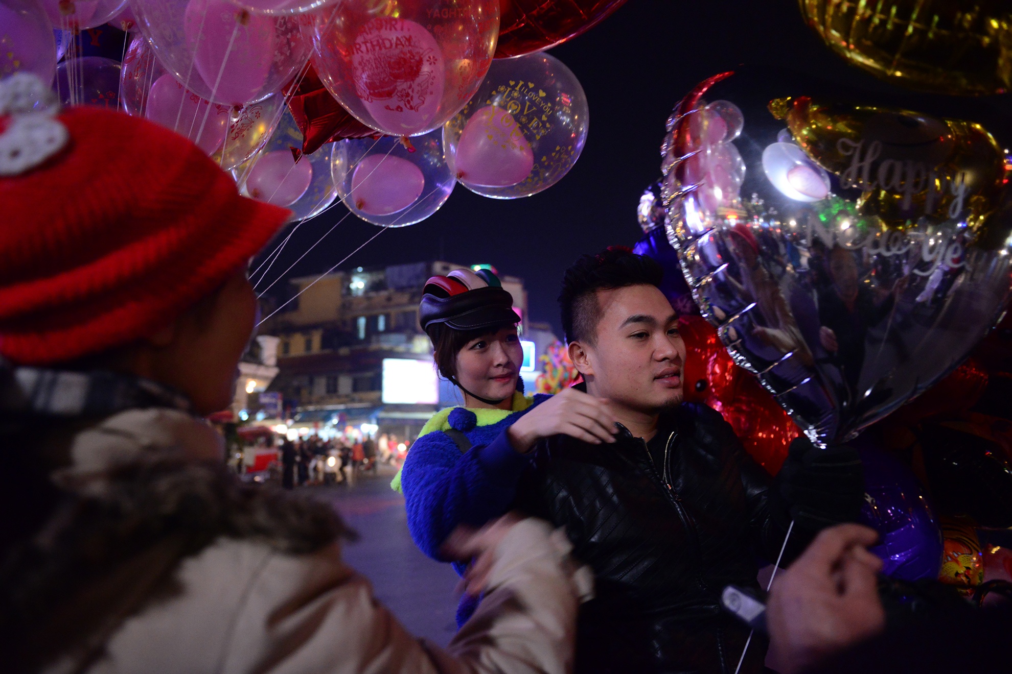 Chàng trai mua bóng bay tặng bạn gái. Ảnh: Tuấn Mark.