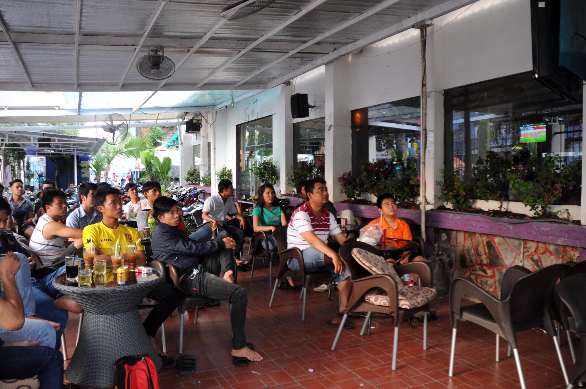 | Nhiều người không thể vào sân, đành tìm các quán cà phê gần SVĐ để theo dõi đội tuyển thi đấu. |
