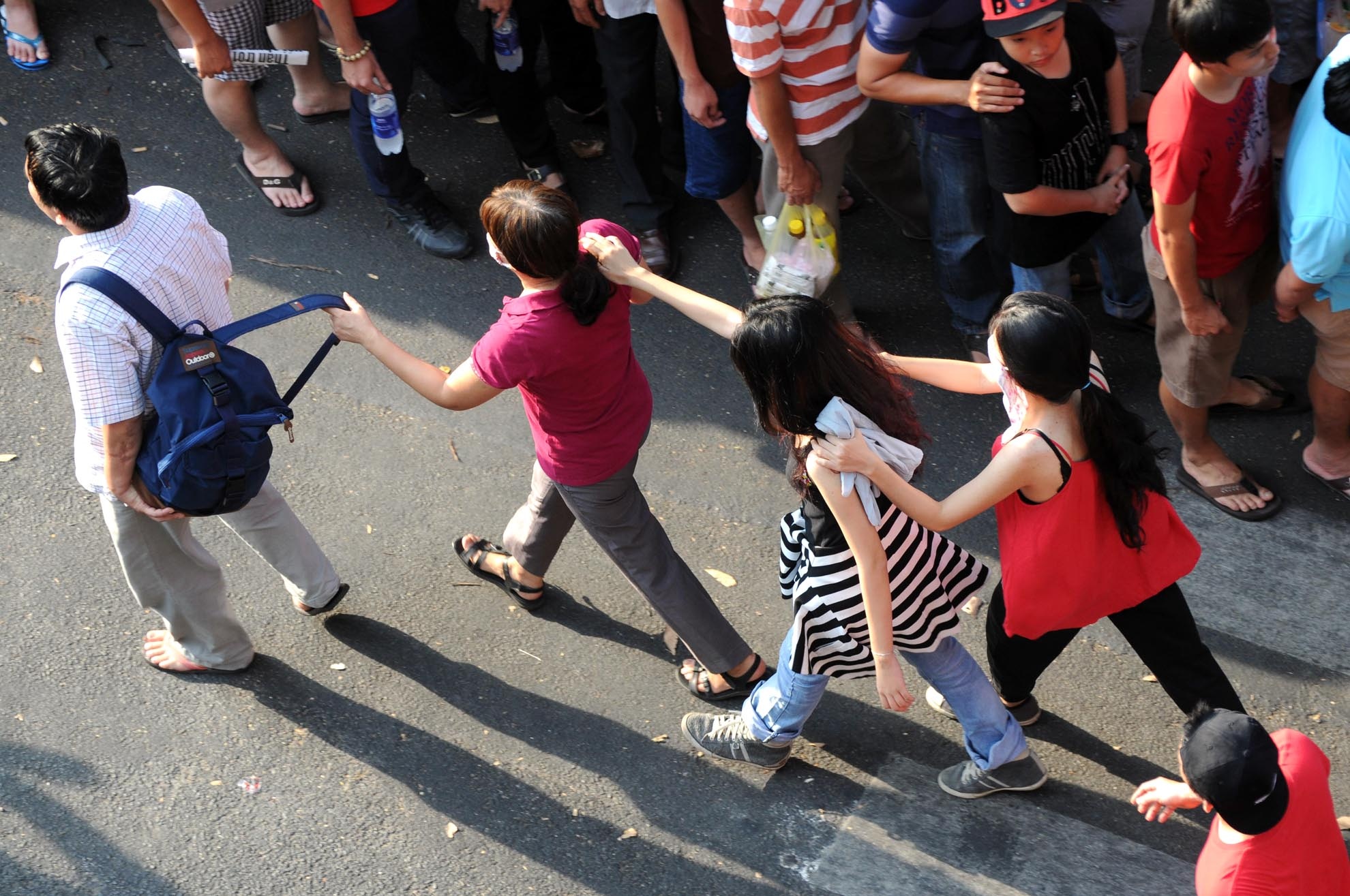 | Để tránh bị lạc, nhiều gia đình phải bám vai nhau tìm cửa vào xem bóng đá. |