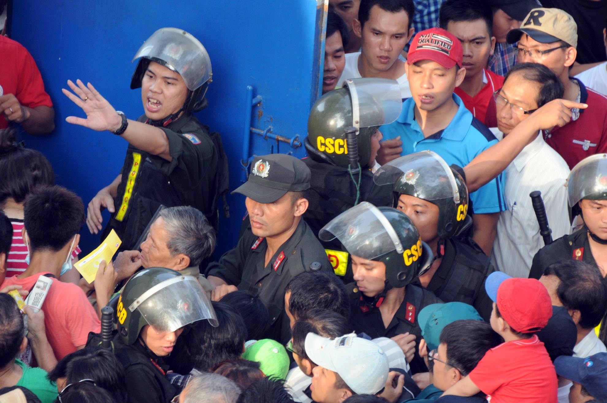 | Cửa vào sân chỉ được mở cho từng người vào, với nhiều lực lượng chốt chặn khiến tình trạng càng trở nên xấu hơn. |