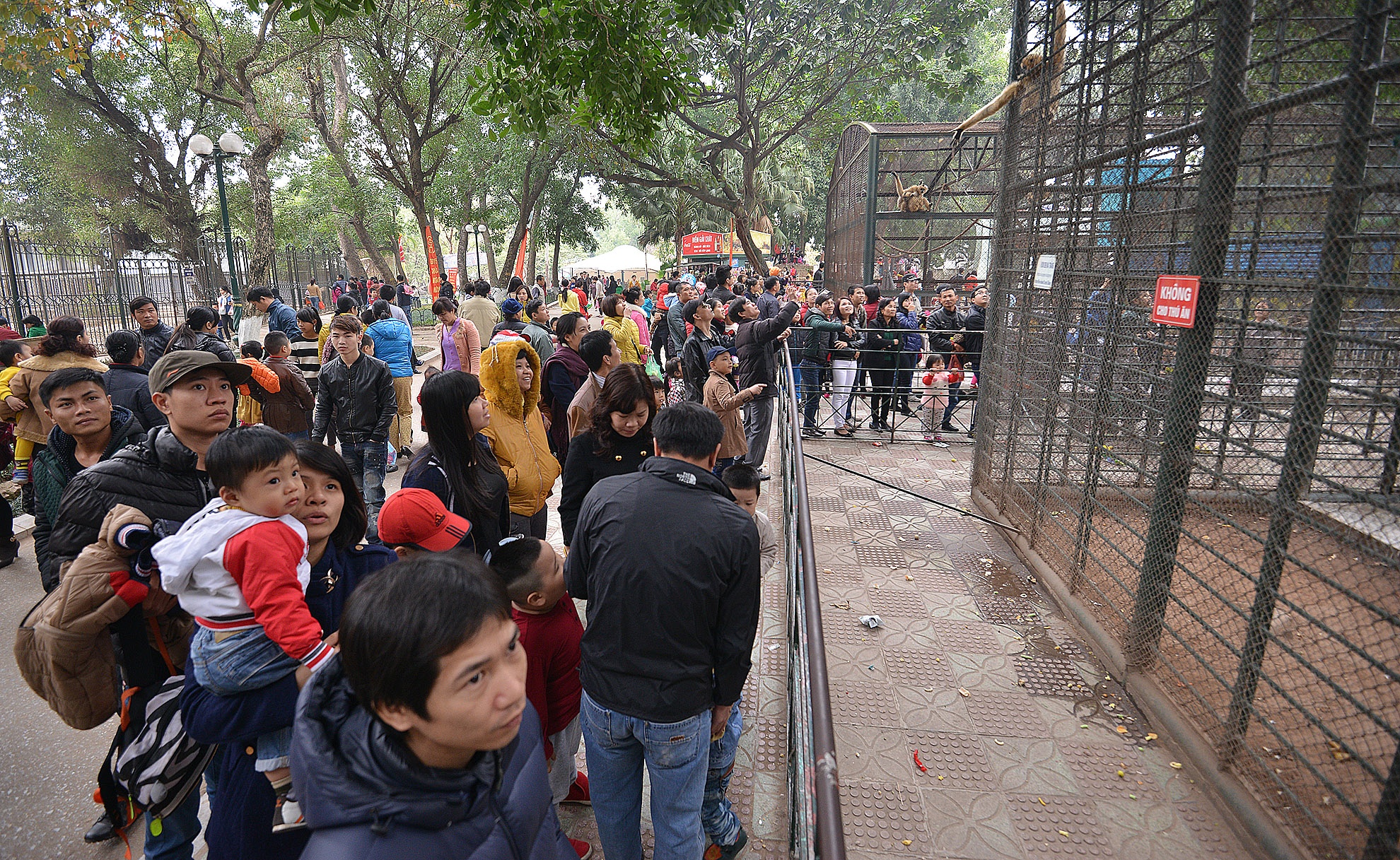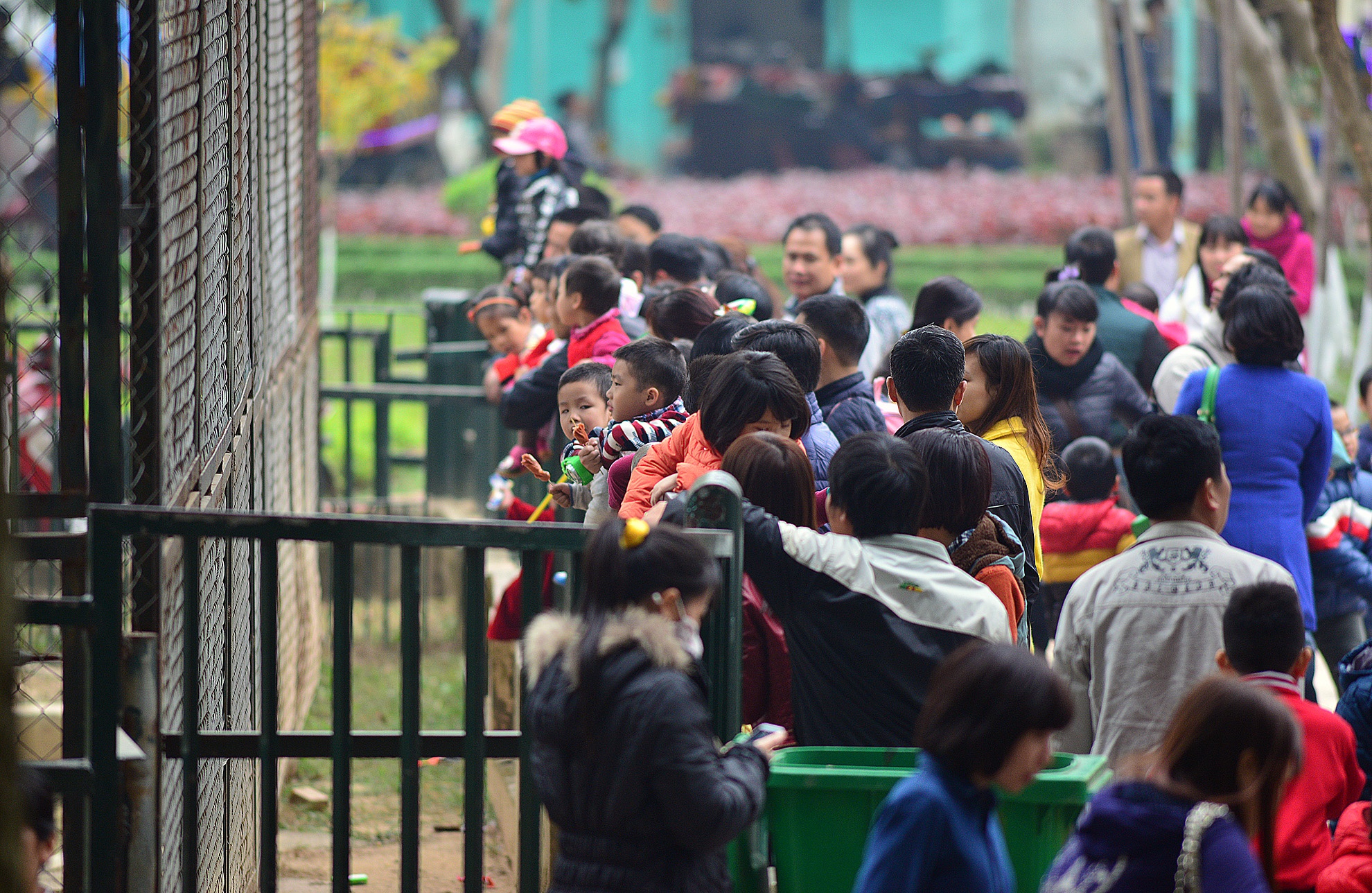 | Đến gần trưa, dòng người tiếp tục đổ về công viên Thủ Lệ không ngớt. |
