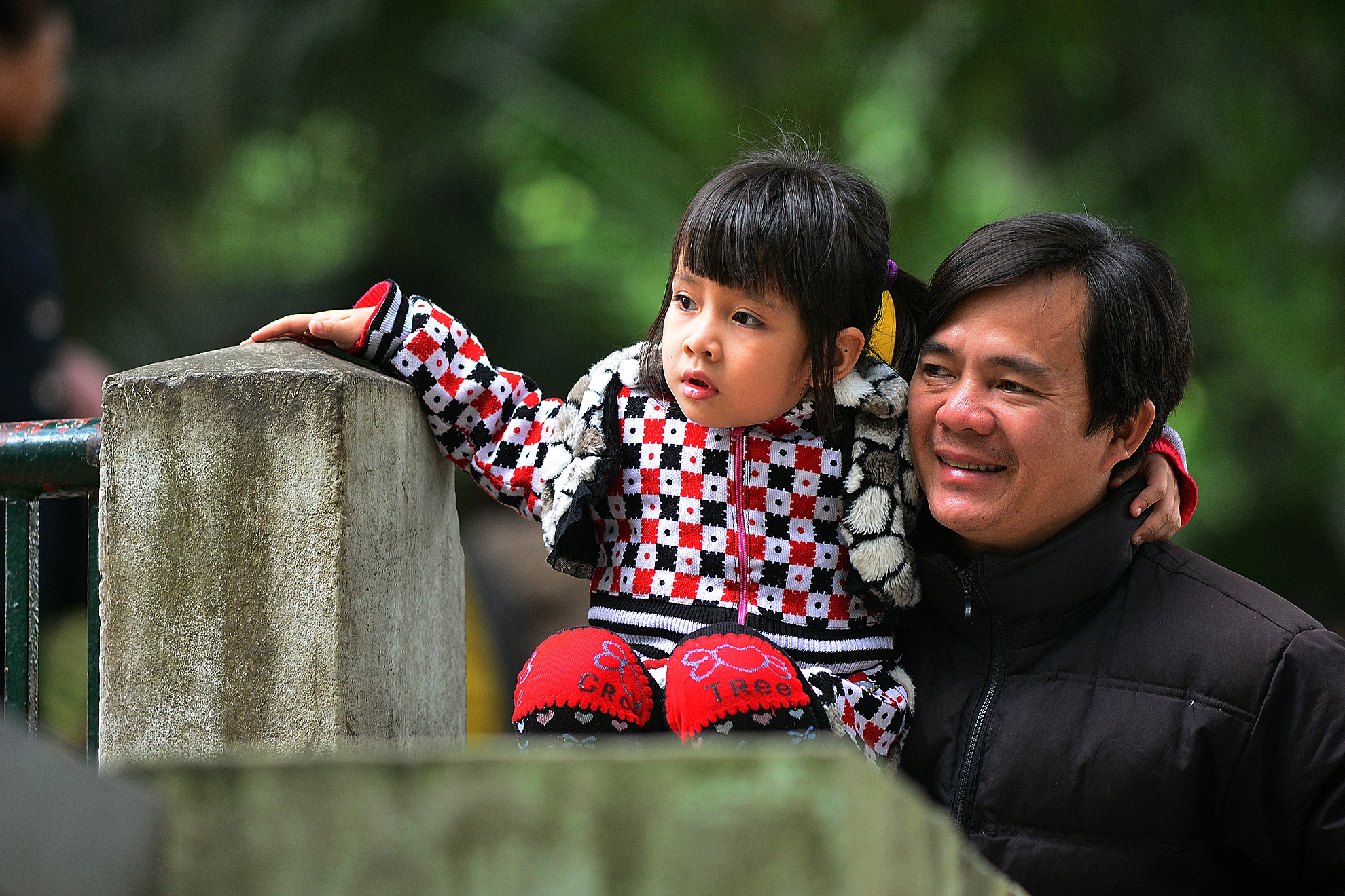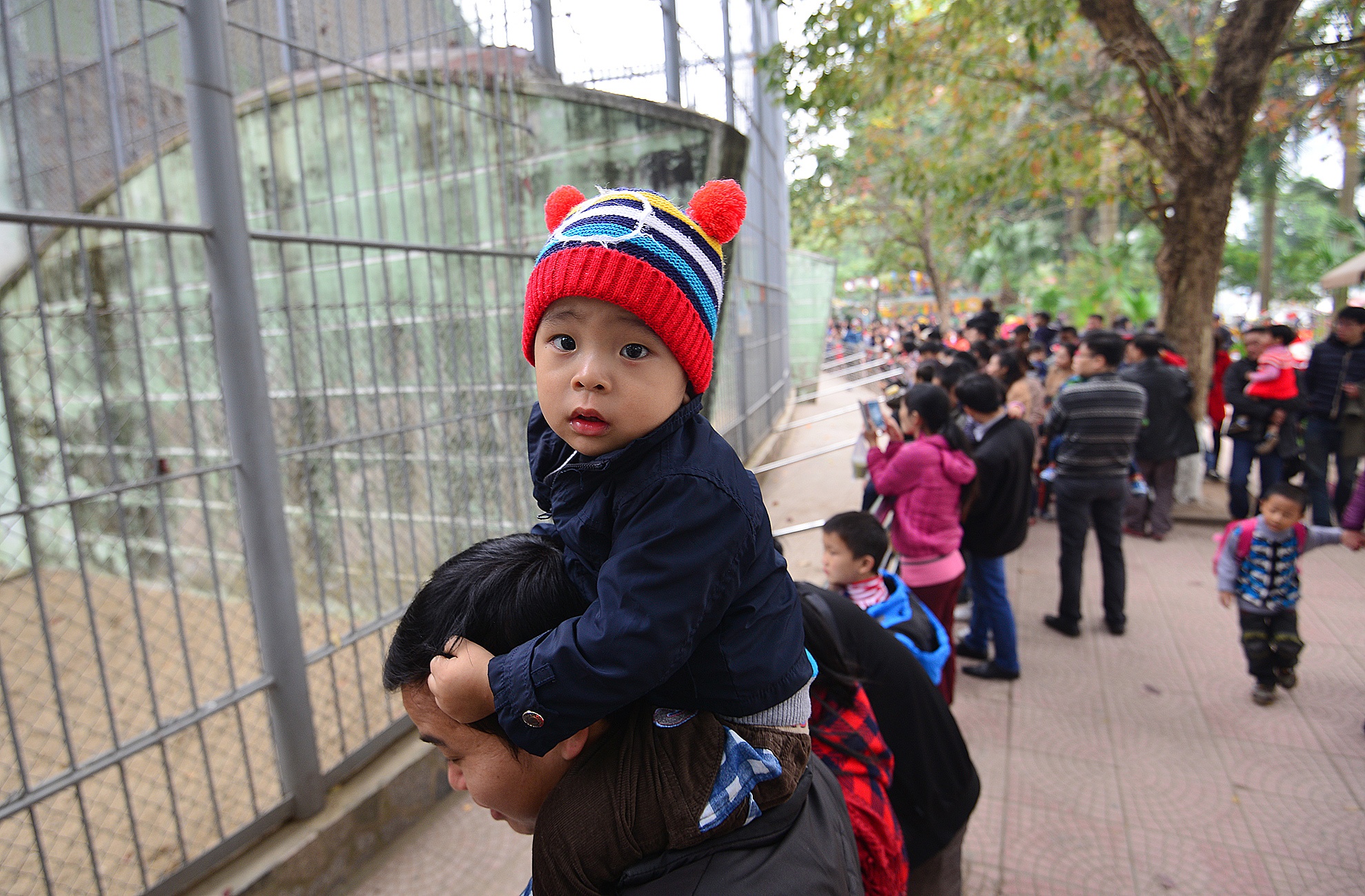 Bé Tít được bố cõng lên vai để ngắm các loài động vật trong công viên Thủ Lệ.