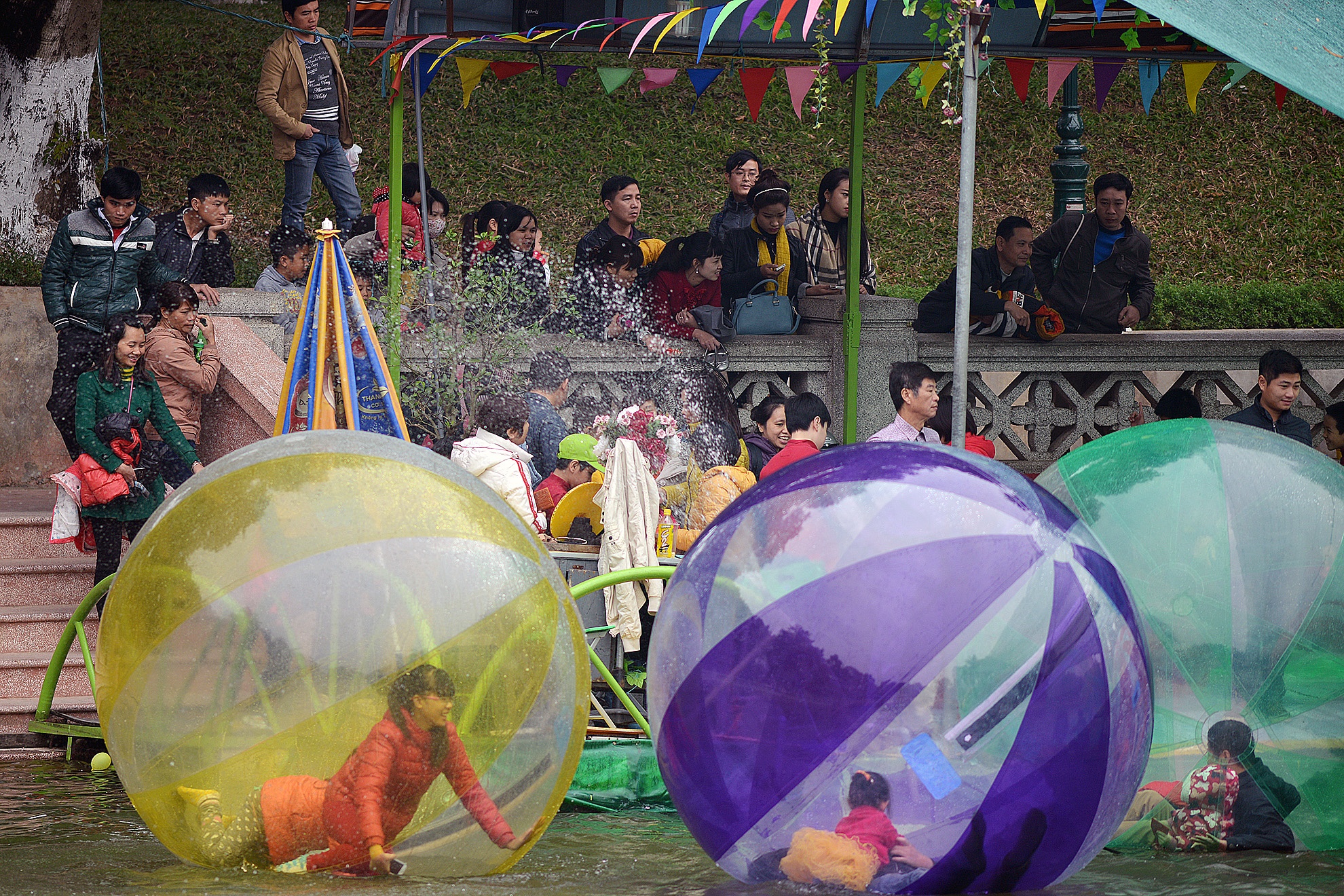 Khu vực trò chơi bóng lăn trên nước lúc nào cũng đông đúc.