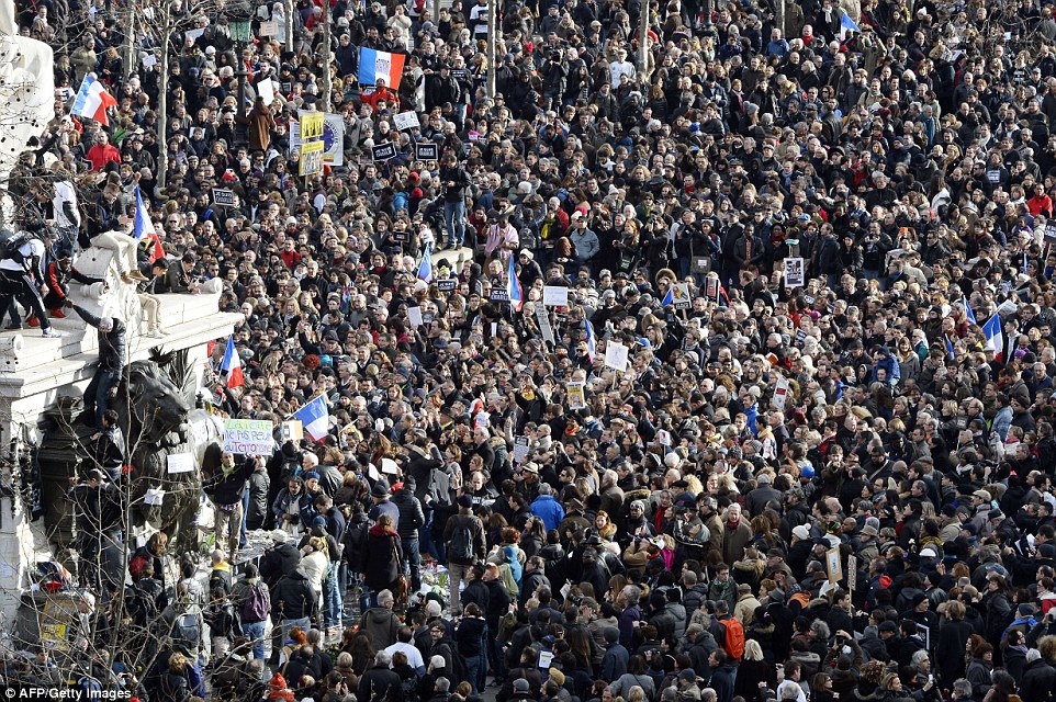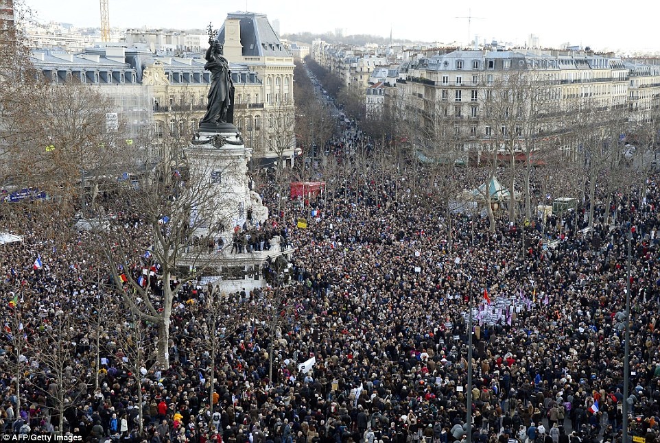 | Hàng triệu người dân đổ về quảng trường Place de la République ở thành phố Paris từ trước giờ diễu hành rất lâu. Ảnh: Getty |