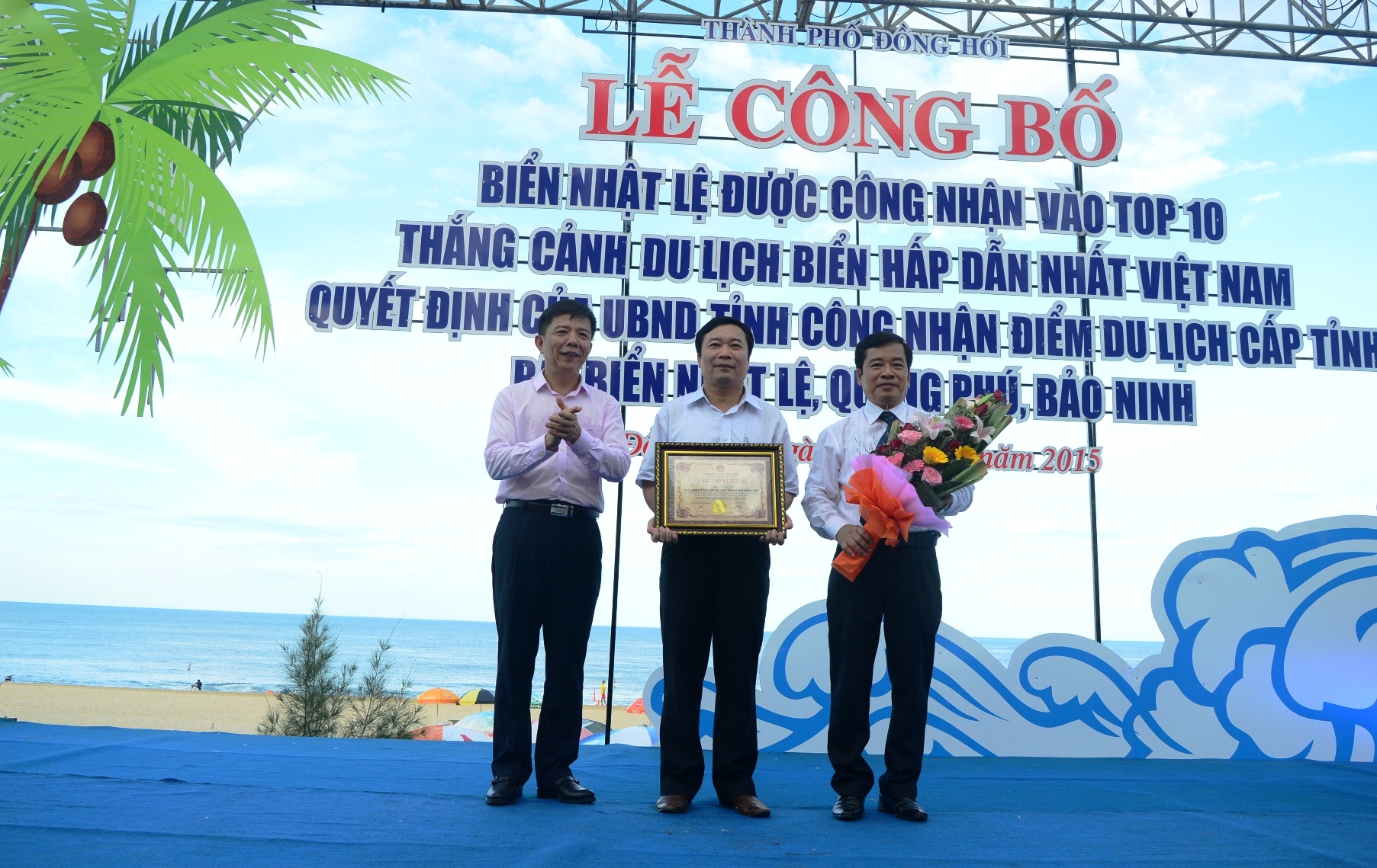 Nhân dịp này, UBND tỉnh Quảng Bình cũng đã công bố quyết định công nhận các bãi tắm biển Nhật Lệ (phường Hải Thành), Quang Phú (xã Quang Phú) và Bảo Ninh (xã Bảo Ninh) là điểm du lịch cấp tỉnh.