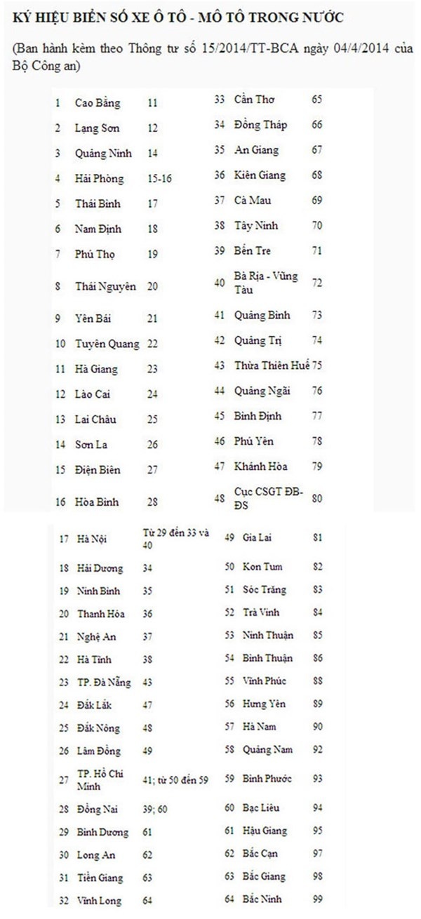 Cùng với quy định mã ký hiệu biển số ôtô, xe máy của các địa phương, thông tư cũng quy định biển số xe máy điện gồm nhóm số ký hiệu địa phương + MĐ (ký hiệu sê ri đăng ký)+ số thứ tự đăng ký có 5 chữ số (ví dụ : 29-MĐ1 002.12).