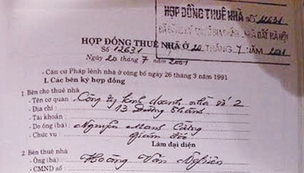 Hợp đồng thuê nhà ở số 12631 ký ngày 20/7/2001 của công ty Kinh doanh nhà số 2 (nay là công ty QL&PT nhà Hà Nội) với ông Hoàng Văn Nghiên, chủ hợp đồng thuê nhà, cho thấy hợp đồng gốc đã hết hạn từ 20/7/2007.
