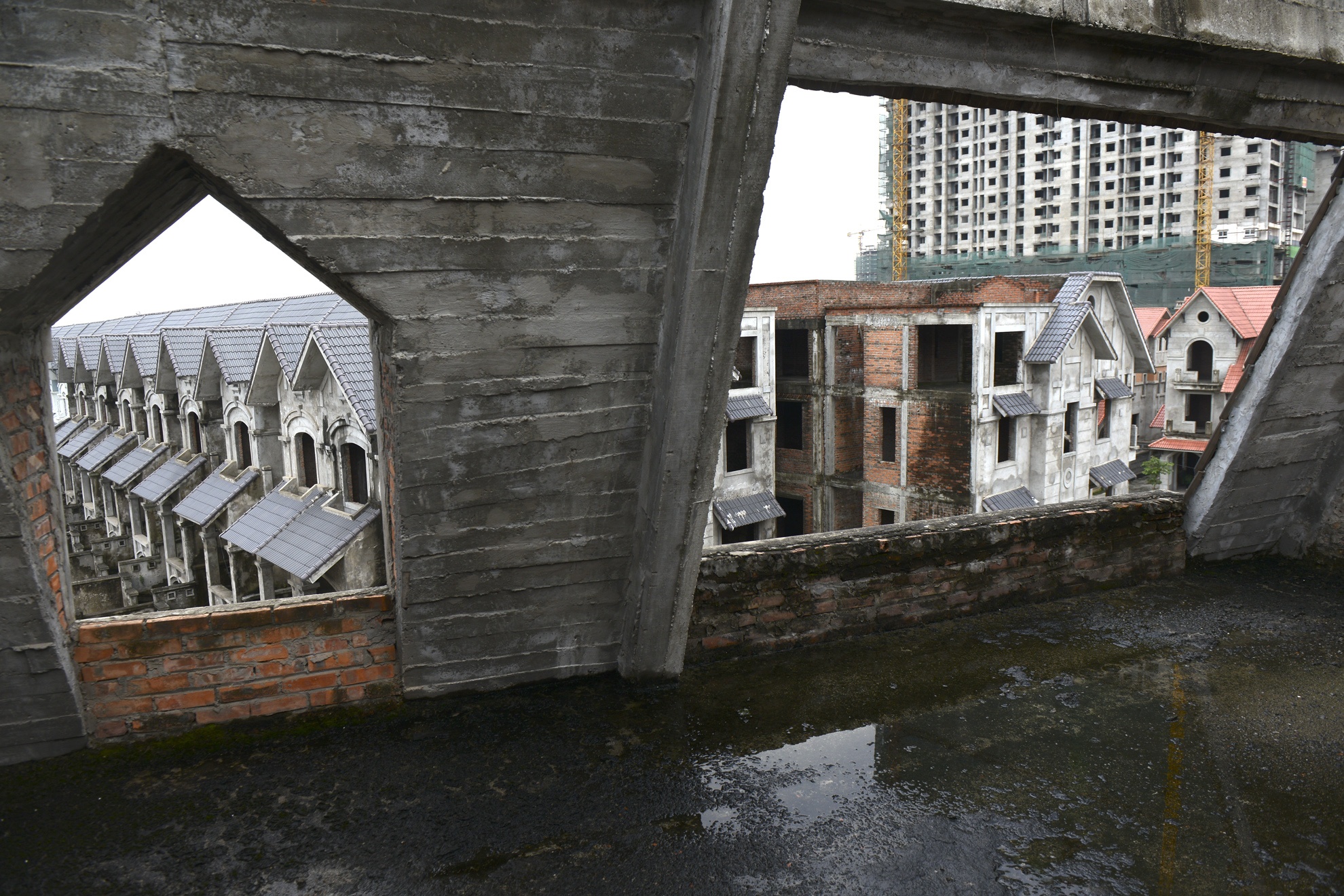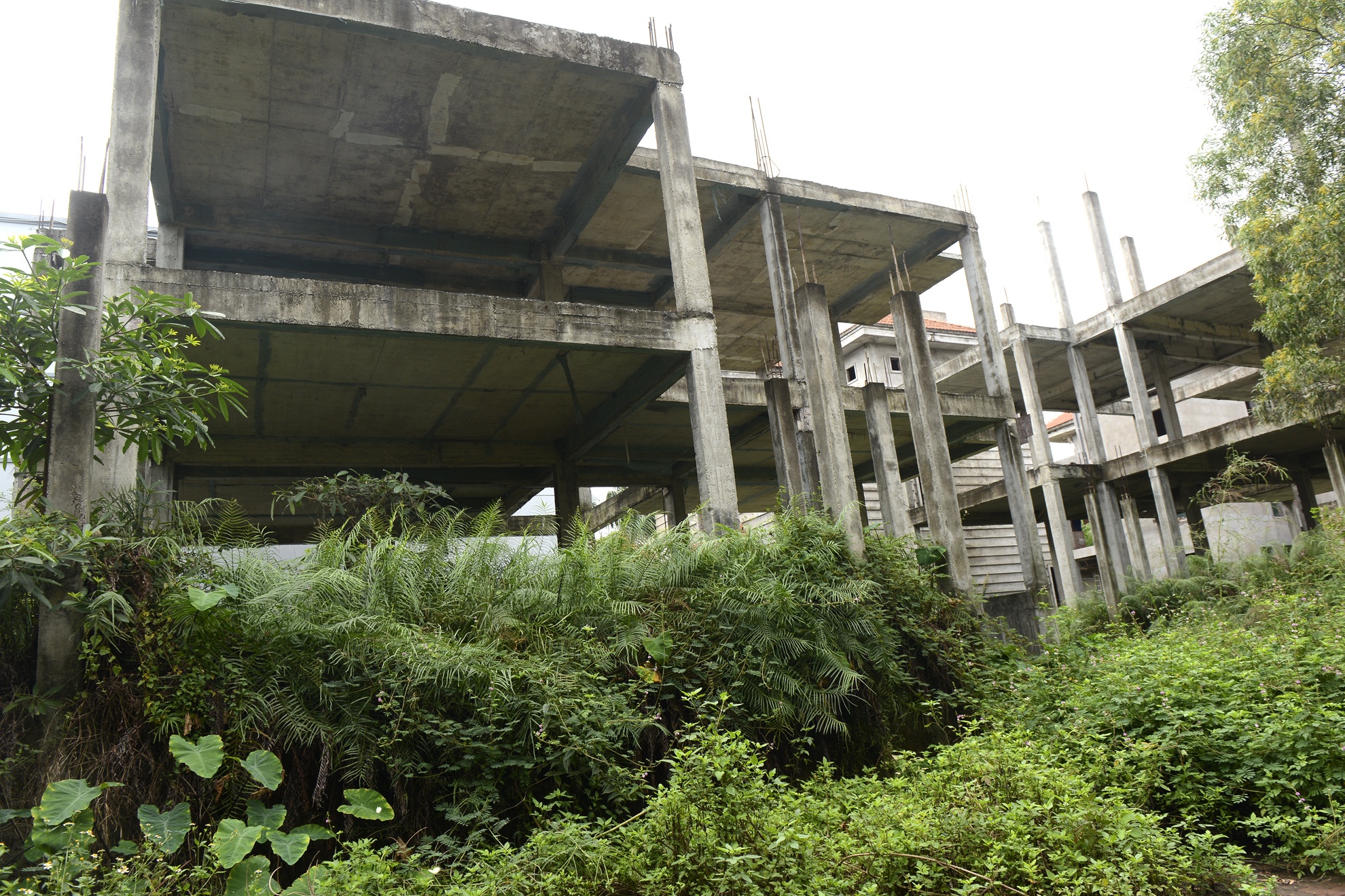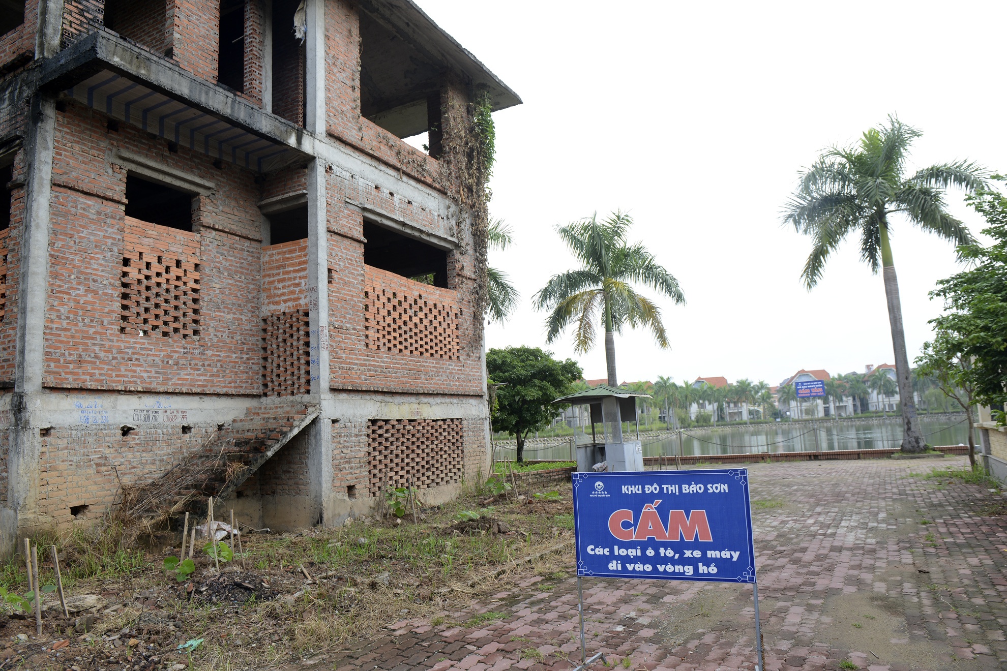 | Hàng chục căn biệt thự trong đó còn chưa hoàn thiện phần xây thô, mới chỉ đổ xong cọc bê tông và nền. |