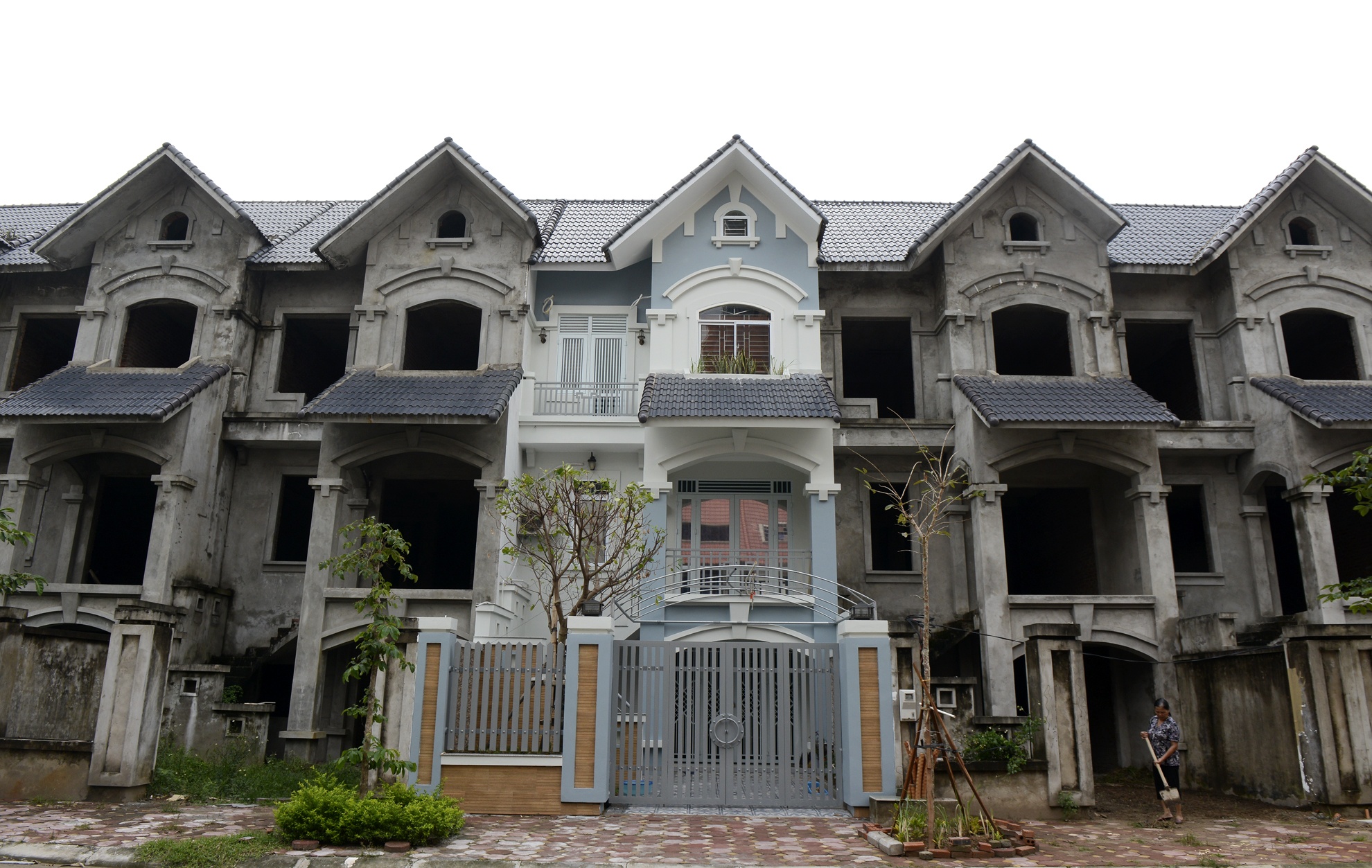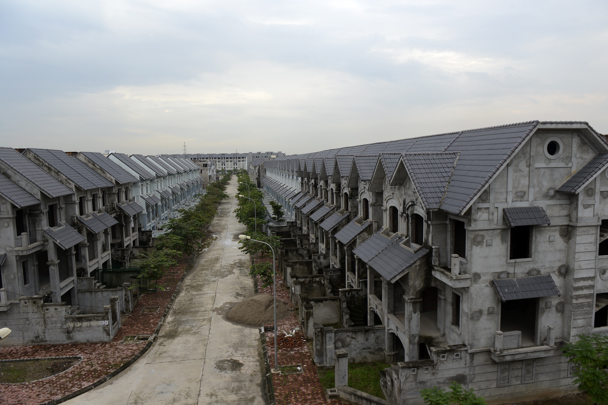 | Hàng loạt biệt thự và nhà liền kề cao cấp giống như đã bị bỏ hoang nhiều năm. Với diện tích 135 ha xây dựng dự án hứa hẹn có nhà đa chức năng, trung tâm thương mại, sân golf, trường học, phòng khám đa khoa, khu tổ hợp thể dục, thể thao, nhà ở, biệt thự, chung cư... Tuy nhiên kể từ năm 2007 đến nay dự án mới chỉ mới chỉ hoàn thiện thô khu A gồm các biệt thự liền kề, các công trình khác chưa thấy đâu. |
