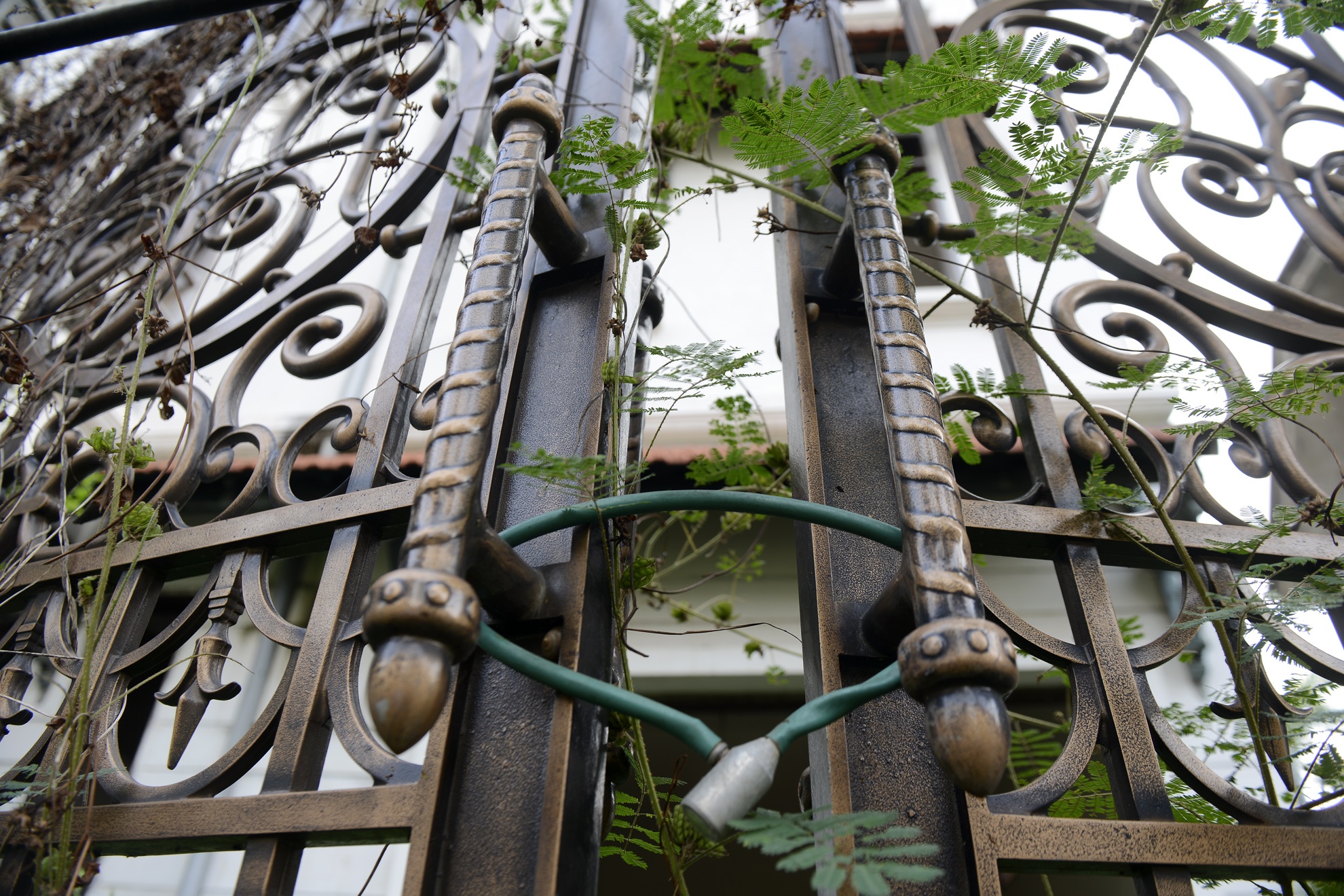 | Những cánh cổng biệt thự khoá kín đã lâu, rêu phong, cây leo quây kín. |