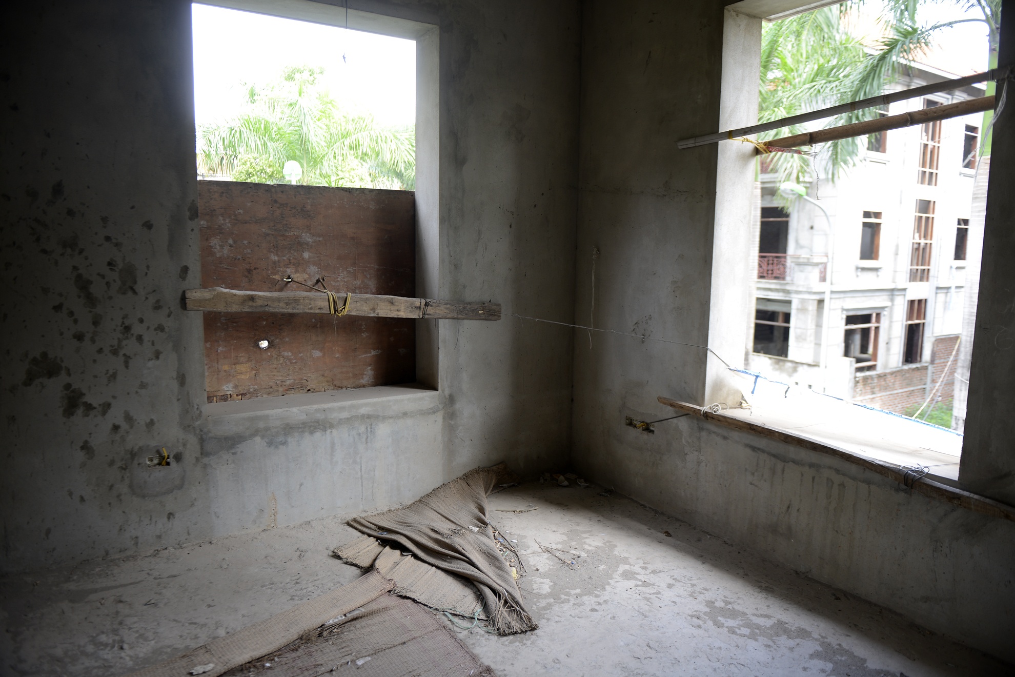 | Một số căn chưa hoàn thiện bề mặt lộ rõ các vết nứt vỡ tường bên trong. |
