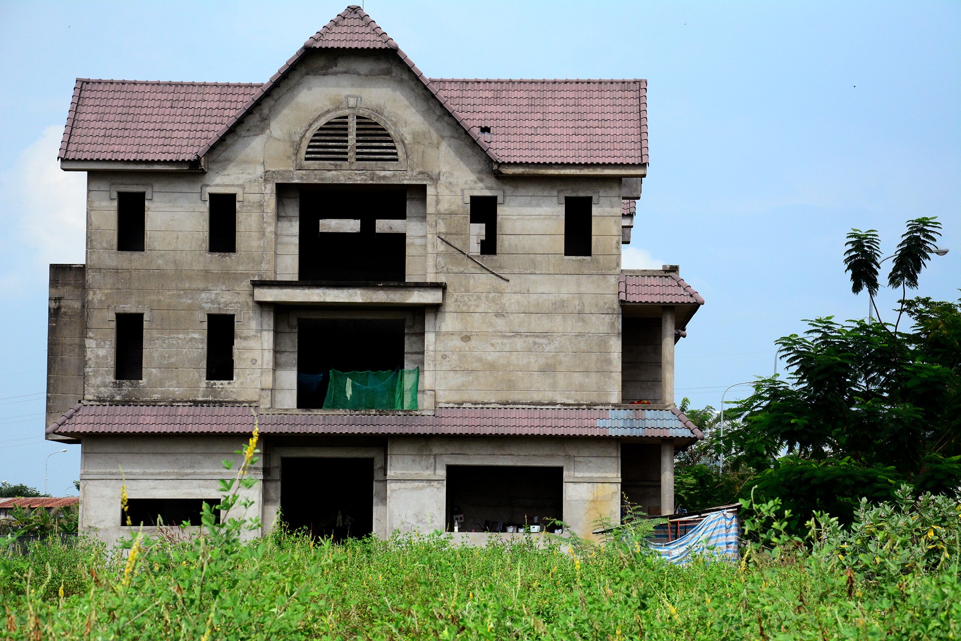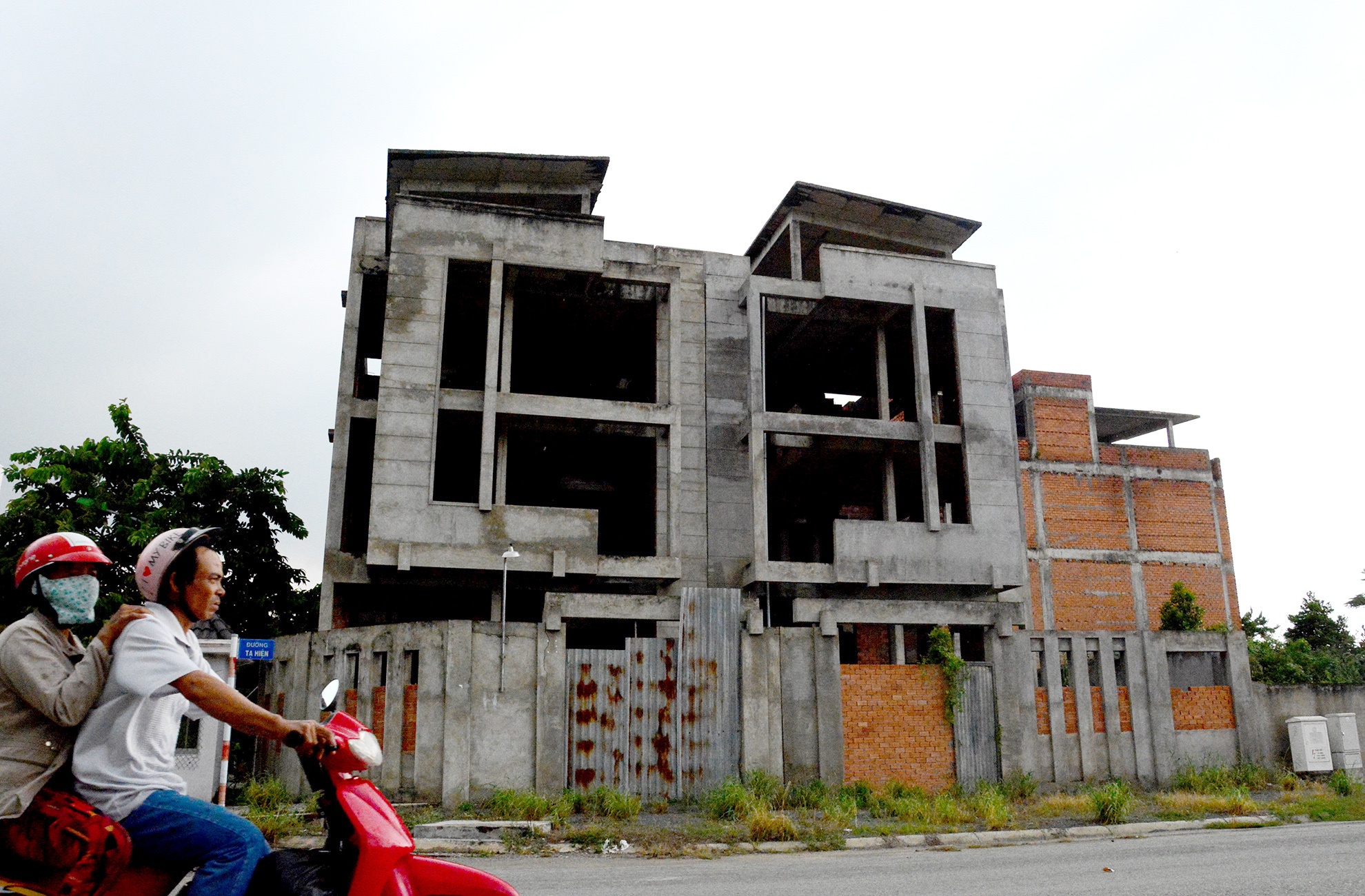 | Hàng chục căn biệt thự xây xong phần thô rồi bị bỏ dở, xuống cấp nghiêm trọng. |