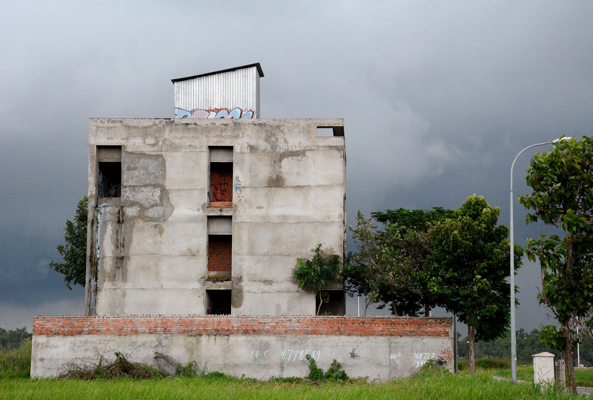 | Dự án triển khai từ trước cơn sốt đất năm 2007, giá trung bình một căn nhà phố khuôn viên đất 144 m2, xây thô, một trệt ba lầu bán khoảng 3 tỷ đồng. Sau gần 10 năm, những căn biệt thự này hoang lạnh như những ngôi "nhà ma". |