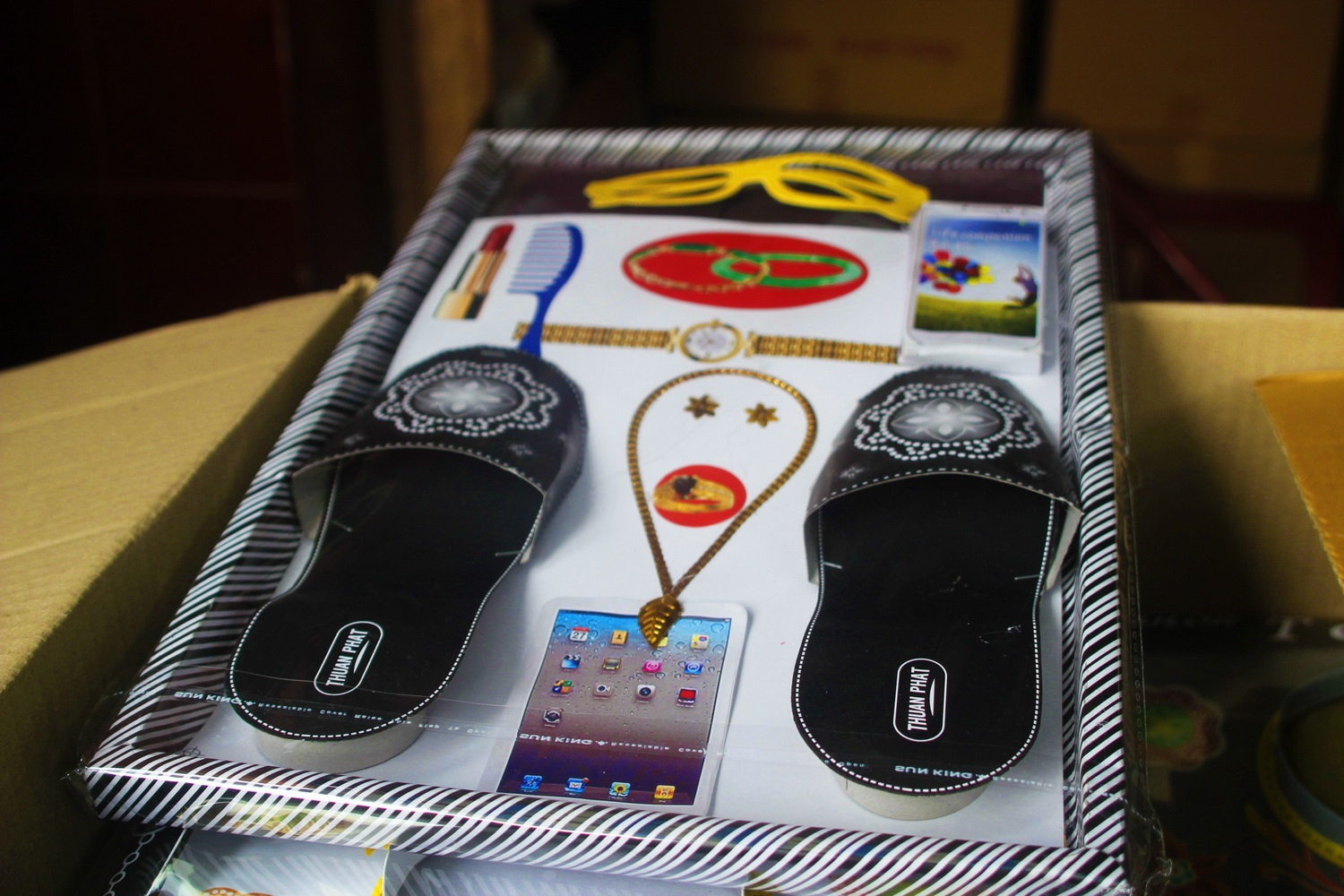Thời trang, thiết bị điện tử cho người cõi âm cũng đa dạng, từ giày dép, son môi, trang sức, áo quần, mắt kính, điện thoại, máy tính đời mới… Tất cả đều được sắp xếp thành bộ theo giới tính của người cõi âm.