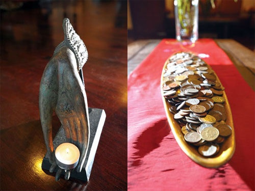 Góp phần vào sự bình yên của ngôi nhà là những tượng Phật được nam ca sĩ bày biện tại nhiều vị trí trong căn nhà. Trong không gian sống của chàng ca sĩ thành đạt này còn có những vật dụng mộc mạc gắn liền với cuộc sống dân dã ở quê nhà như chiếc lu, viên đá cuội, hay gạch thô…