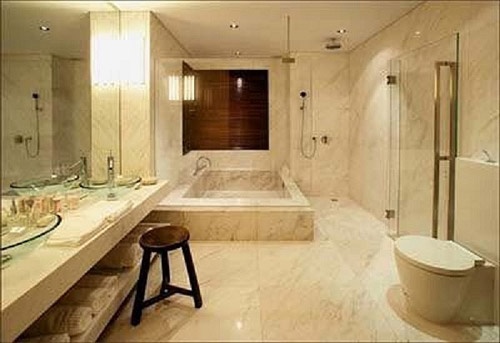 Nhà tắm sang trọng, thoáng mát và được lát bằng một loại đá đặc biệt. |