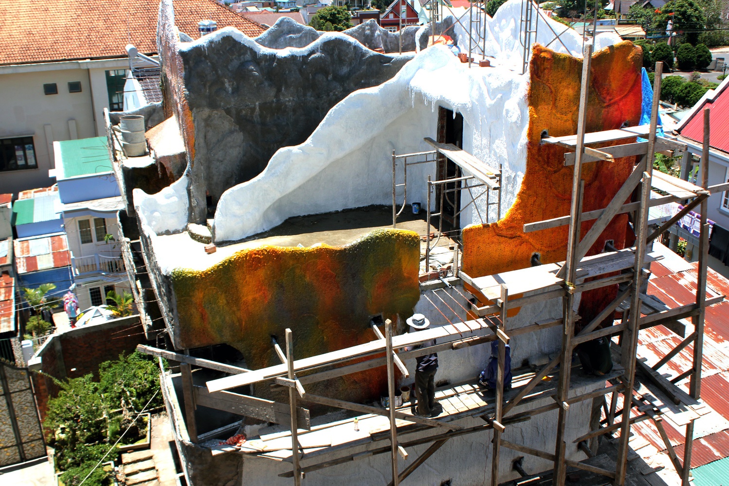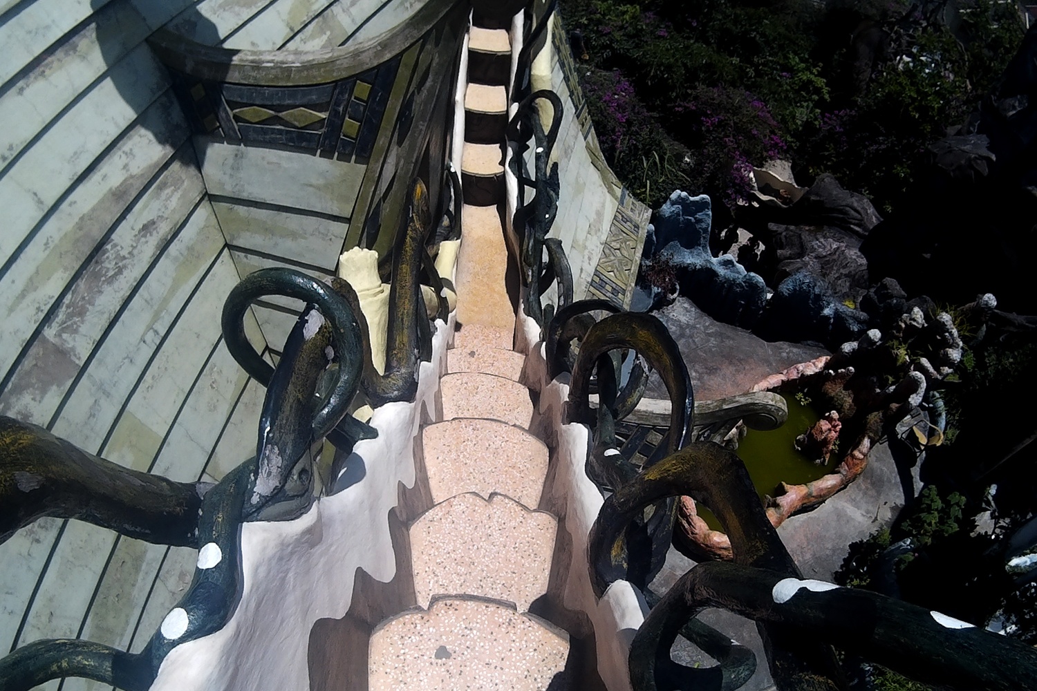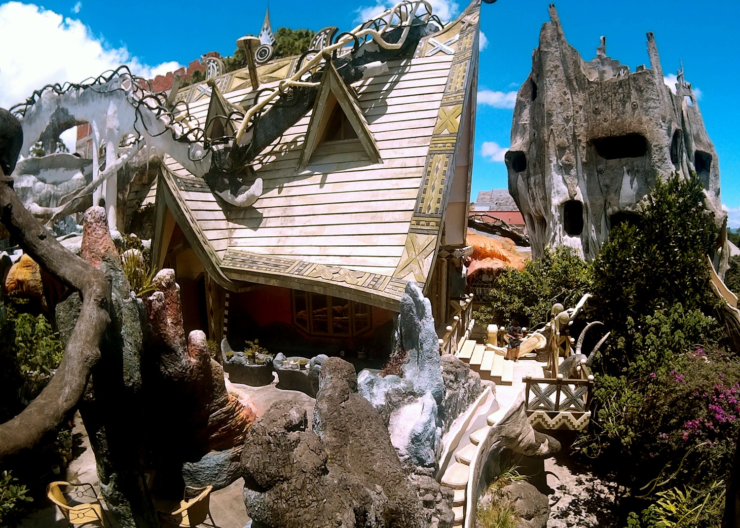 | Biệt thự xây dựng theo ý tưởng "thoát xác". Phía dưới được thiết kế như hang động ma quỷ, lên cao là khung cảnh như mê cung với những lối đi chằng chịt. Khắp nơi đều là cầu thang. Khách có thể đi từ dưới lên đến tận mái nhà. |