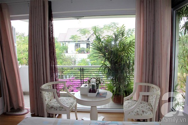 | Bộ bàn trà nhỏ xinh kê sát ban công là nơi hóng gió, thư giãn của chị Lan. |