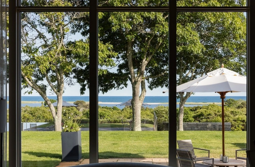 | Cửa sổ hướng ra bờ biển Chilmark Pond và Đại Tây Dương. |