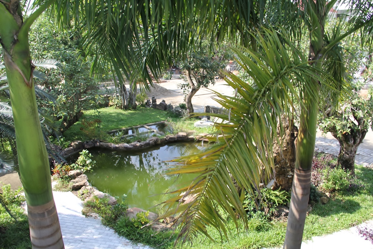 | Trong khuôn viên biệt thự của tướng Thạch có cả vườn cau, ao cá và nhiều cây cảnh quý hiếm. |