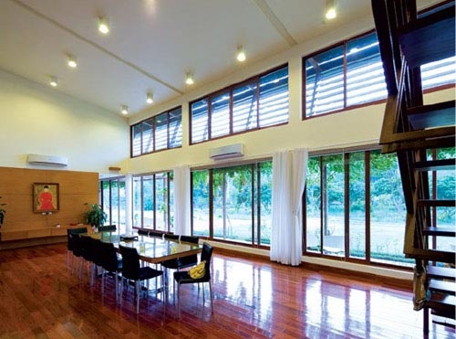 | Không giống như nhiều khu “biệt phủ” khác, căn biệt thự của Mỹ Linh mang xu hướng hiện đại và tiện nghi. Trên khoảng đất rộng, thiết kế 1 tầng thoáng mát được chọn làm trọng điểm ở khu nhà dài có diện tích khoảng 300 m2. Xung quanh là những không gian phục vụ cho những hoạt động giải trí, vui chơi và nghỉ dưỡng riêng biệt. |