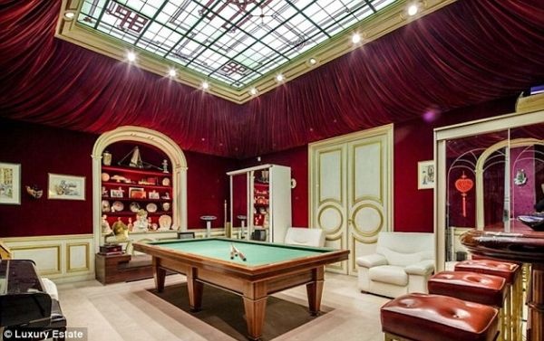 Góc thư giãn với bàn bida. Với ba dãy phòng ngủ/phòng tắm căn biệt thự này là địa điểm lý tưởng cho một mối tình ở thủ đô nước Pháp. Ngôi nhà xuất hiện xa hoa với đá cẩm thạch được sử dụng từ sàn nhà cho tới các trụ cột – thực sự rất tốn kém.