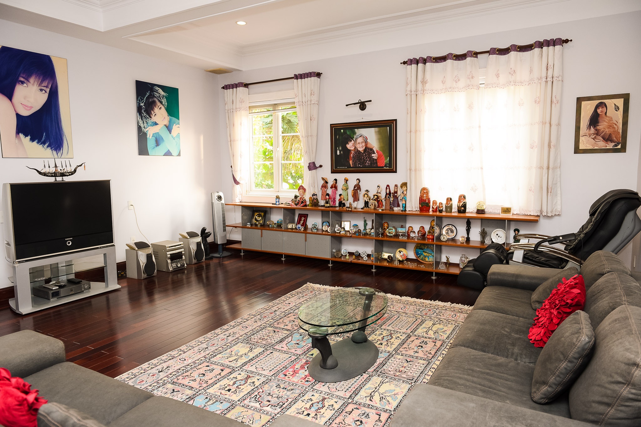 | Vợ chồng Hiền Mai đầu tư hẳn phòng giải trí hiện đại với máy chiếu và dàn máy nghe nhạc. Vì thế, khách đến chơi có thể xem phim hoặc nghe những bản nhạc du dương. |