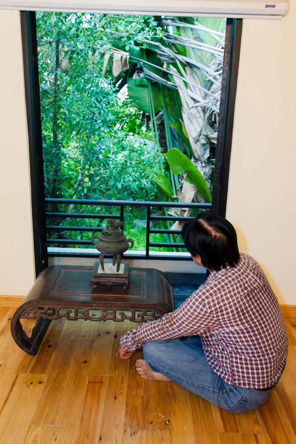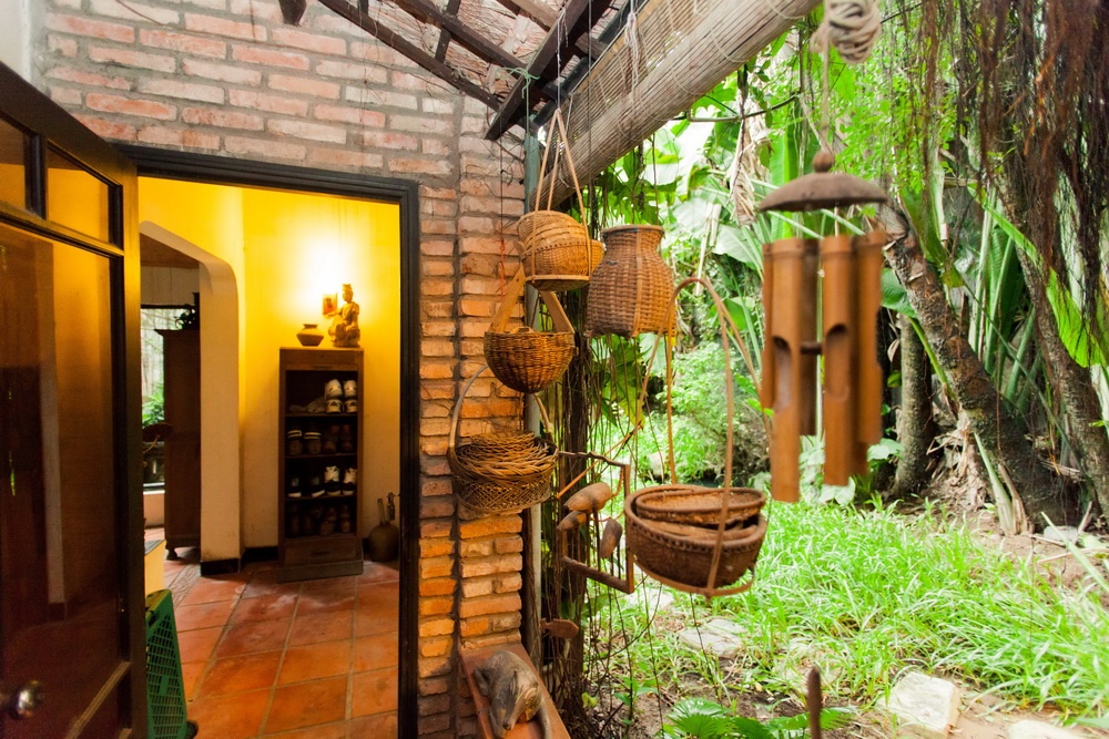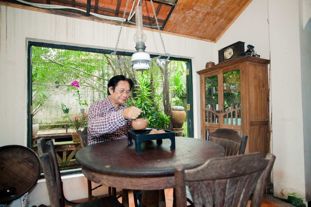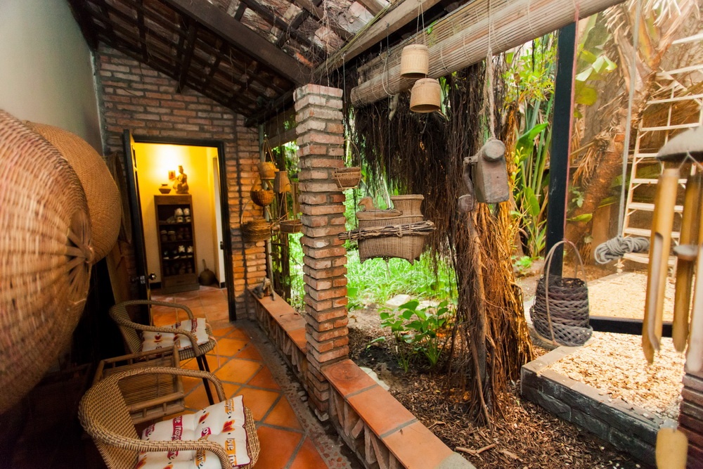 Vật liệu thiên nhiên như gỗ, gốm, đất... cũng được chủ nhân chọn sử dụng rất tinh tế để có thể hòa quyện cùng màu xanh của thảm thực vật. Những vật dụng trong nhà cũng được nhạc sĩ tài hoa sưu tầm hoặc lựa chọn rất cẩn thận để có thể tôn thêm được tinh thần của cả không gian sống đặc biệt này.