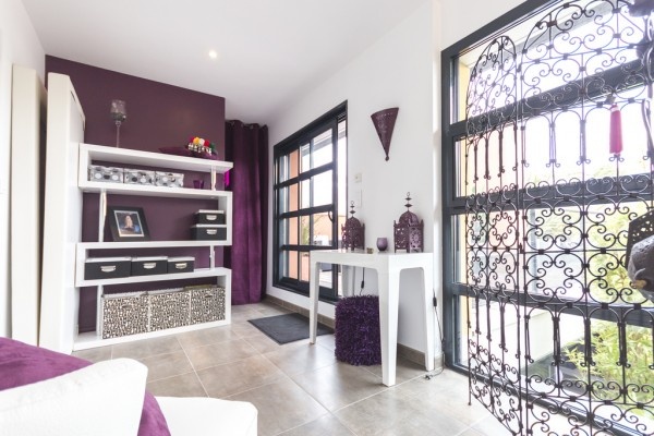 Phòng khách nổi bật với những chiếc đệm màu sắc rực rỡ. |
