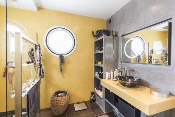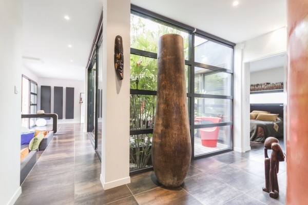 Nét châu Phi hiện diện rõ nét nhất trong ngôi nhà này với các mặt nạ gắn trên tường. |