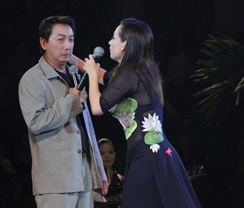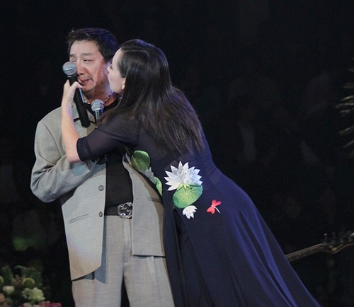 | Trong một màn song ca tại Hà Nội, ngay khi vừa bước lên sân khấu, Phi Nhung "đòi" Trường Vũ phải hôn cô như là món quà sau thời gian dài cả hai không biểu diễn trước khán giả quê nhà. Tuy nhiên, nam ca sĩ có vẻ e dè và ngượng ngùng. |