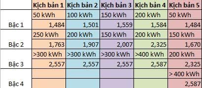 Năm 1994, điện sinh hoạt đã bắt đầu áp dụng bậc thang và giá luỹ tiến, với mức cuối cùng là 251 kWh trở lên thì chịu giá cao nhất. Năm 1997, bậc cuối cùng là từ 300kWh trở lên. Từ năm 2007 đến nay, bậc cuối cùng là 400 kWh trở lên.