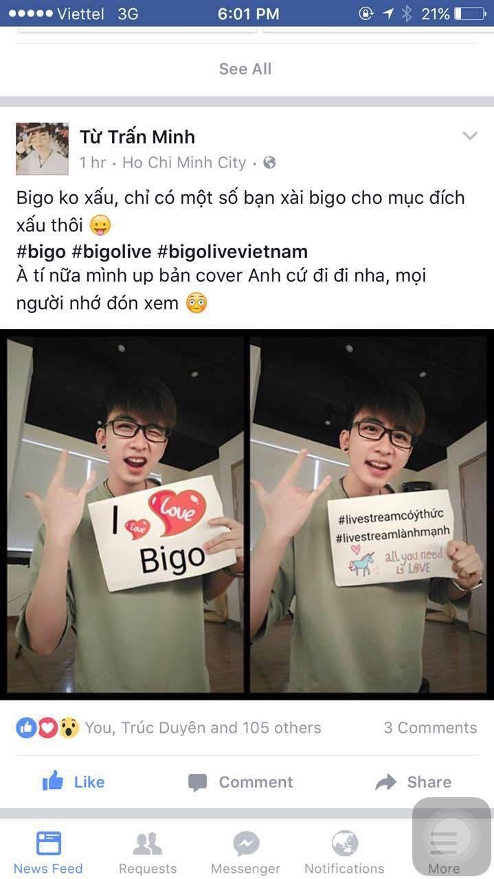 Đại diện Bigo tại Singapore chia sẻ: “Bigo Live là một sản phẩm toàn cầu, chúng tôi cam kết hoạt động theo pháp luật, có tính xây dựng cuộc sống cao... Hiện tại đối với Việt Nam, Bigo Live vẫn là một sản phẩm được cung cấp theo hình thức xuyên biên giới. Đến thời điểm này chúng tôi chưa có bất kỳ pháp nhân nào tại Việt Nam. Nhưng với mục đích kinh doanh bền vững và đặt Việt Nam là một trong những thị trường kinh doanh trọng điểm, chúng tôi đang làm việc với một số hãng luật quốc tế để tìm hiểu các quy định quốc tế cũng như quy định của nước sở tại về lĩnh vực, sản phẩm mà chúng tôi đang kinh doanh. Chúng tôi sẽ sớm chọn ra một hình thức hiện diện pháp nhân phù hợp nhất với nhu cầu của mình tại Việt Nam, thực hiện trách nhiệm pháp lý của mình một cách đúng đắn, công khai, minh bạch”.