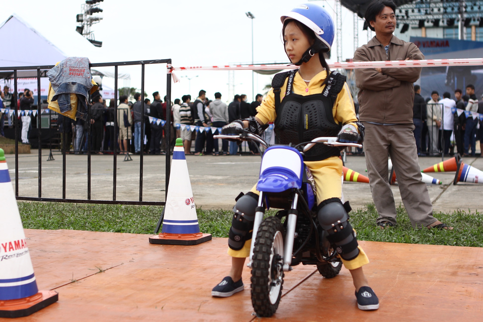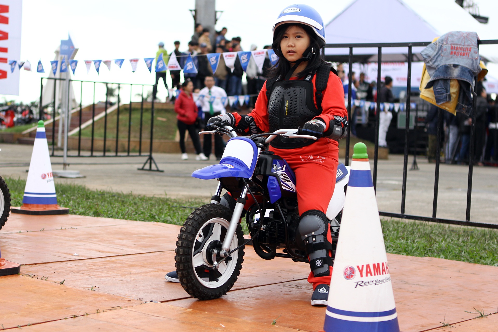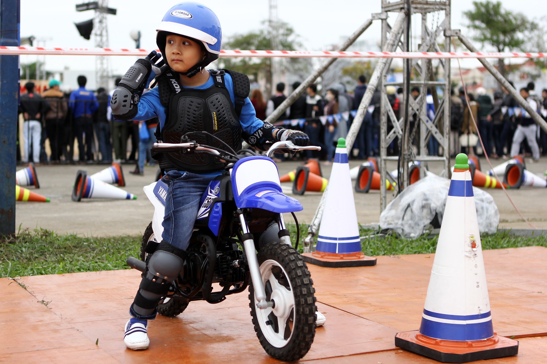 | Sự quyết tâm và tập trung chờ hiệu lệnh điều khiển xe của một "biker nhí". |