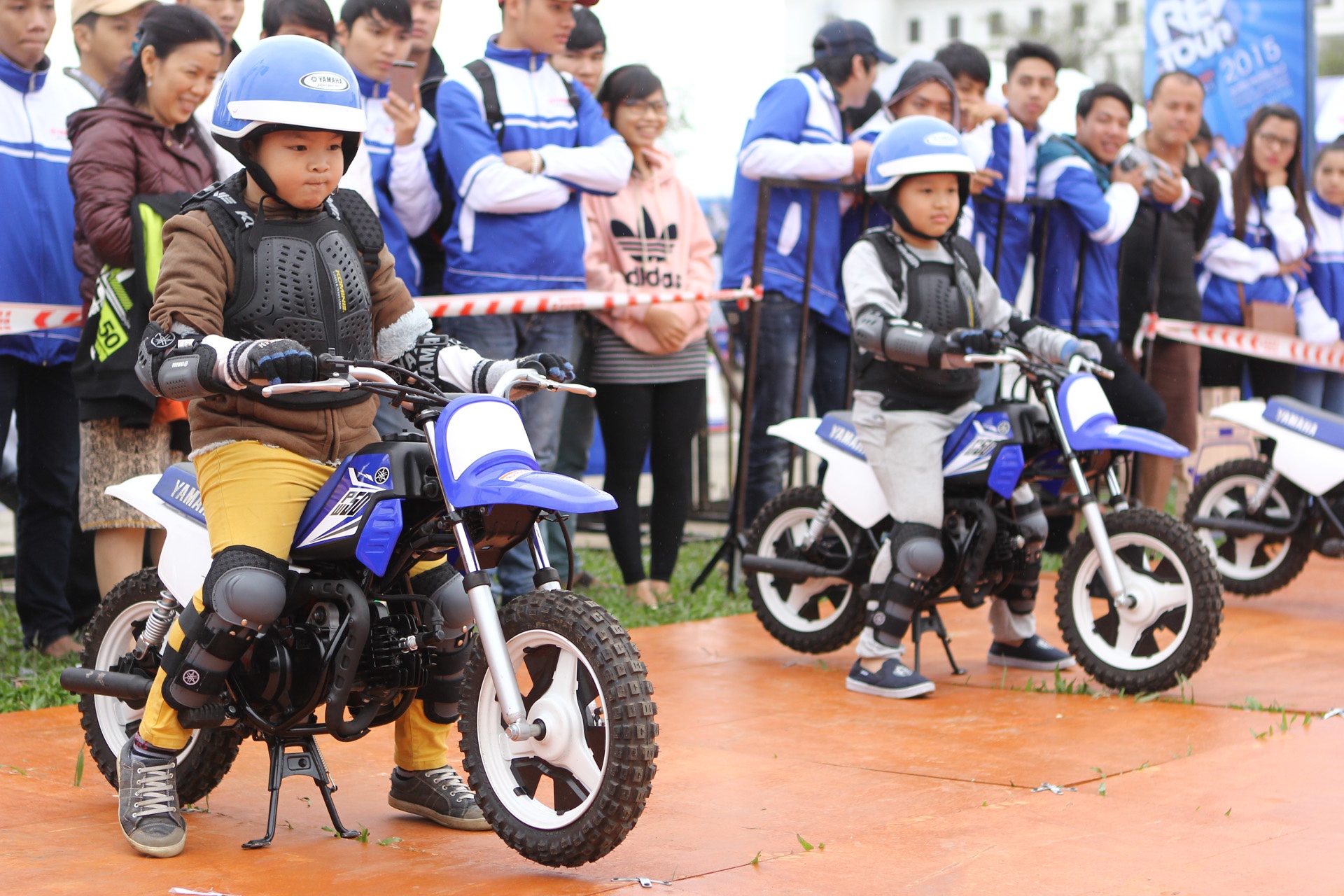 | Những quãng đường đầu tiên được thực hiện thành công của các biker nhỏ tuổi trước sự vui mừng từ phía phụ huynh. |