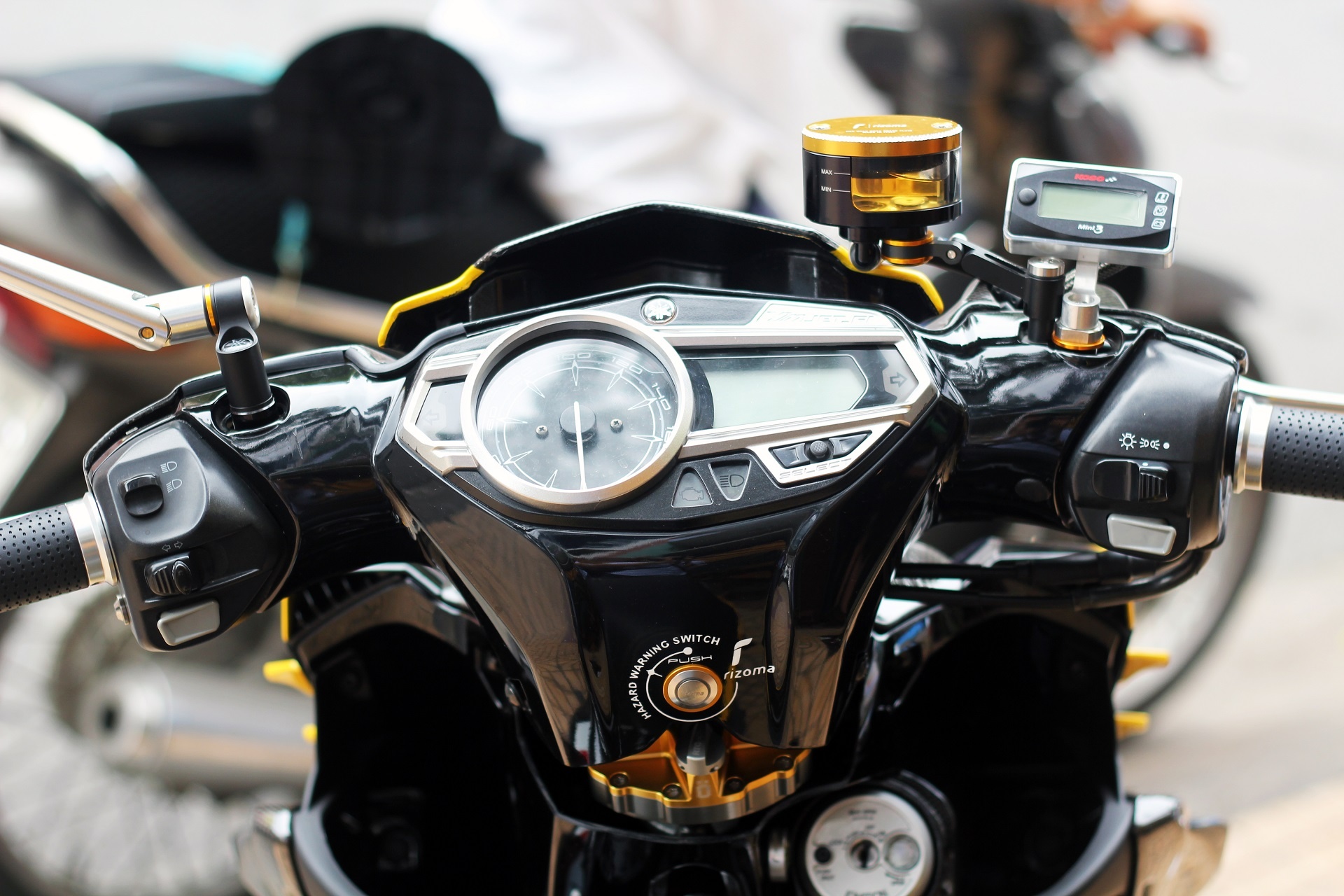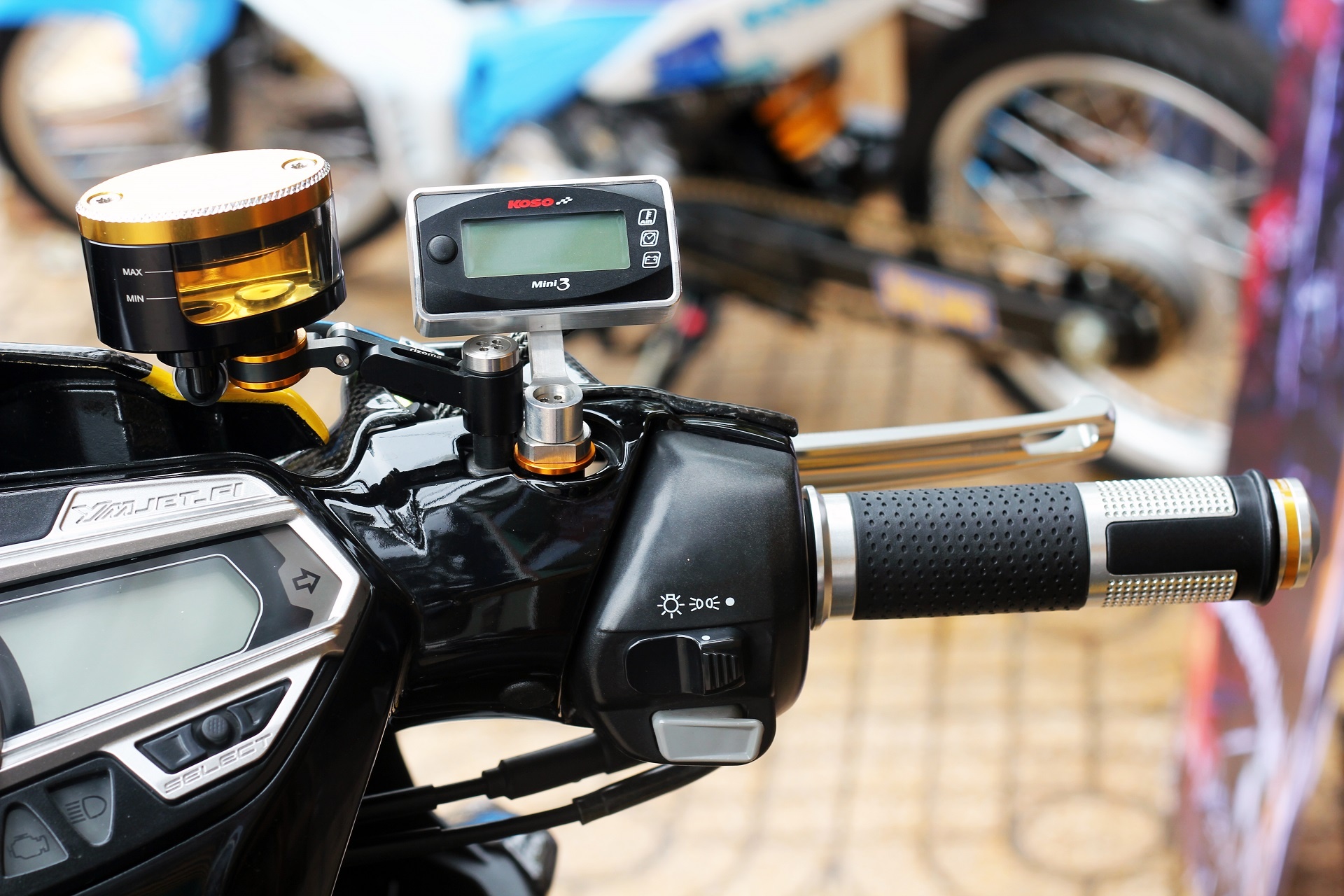 | Đồng hồ Koso Mini 3, bình dầu Rizoma Next, tay thắng Rizoma đi cùng cùm Nissin. |