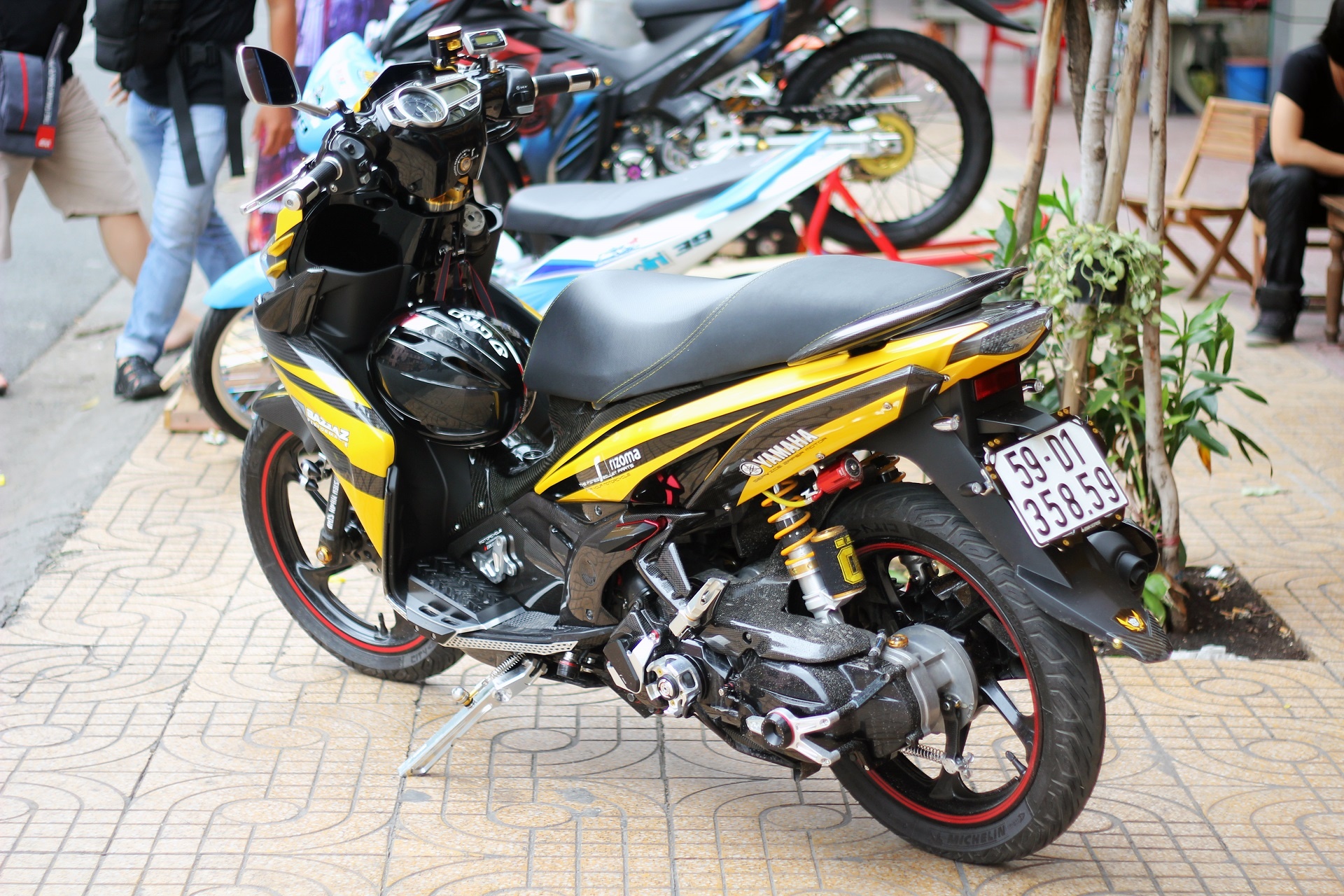 | Đây là sản phẩm được đầu tư rất nhiều tâm huyết của biker trẻ tuổi. Anh gắn thêm nhiều đồ chơi nhằm tăng tính thẩm mỹ nhưng vẫn không làm thay đổi công năng chiếc xe. |