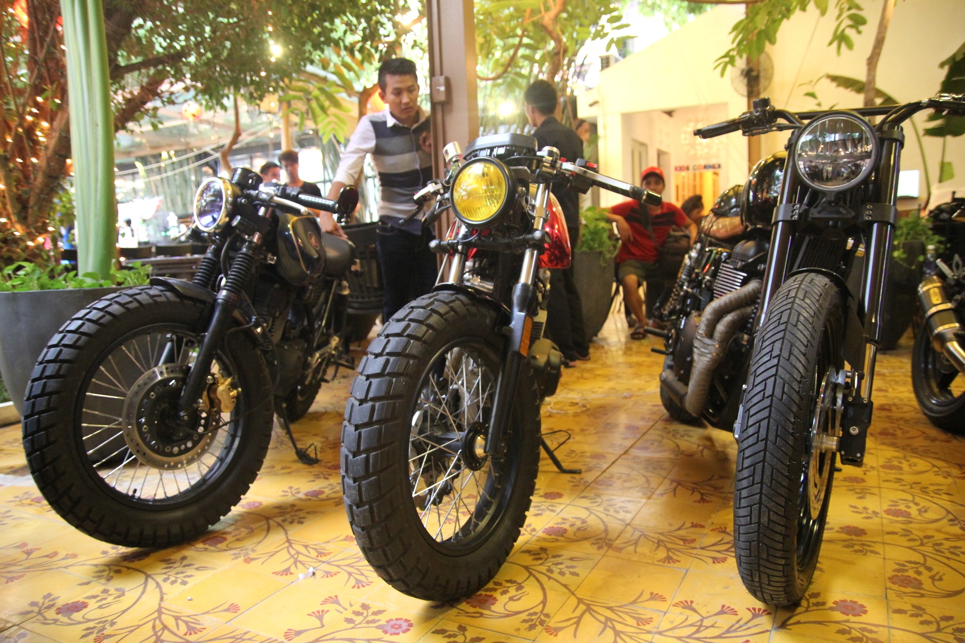 | Một số mẫu cafe racer được xếp bên hông sân khấu nhưng không tranh giải. |