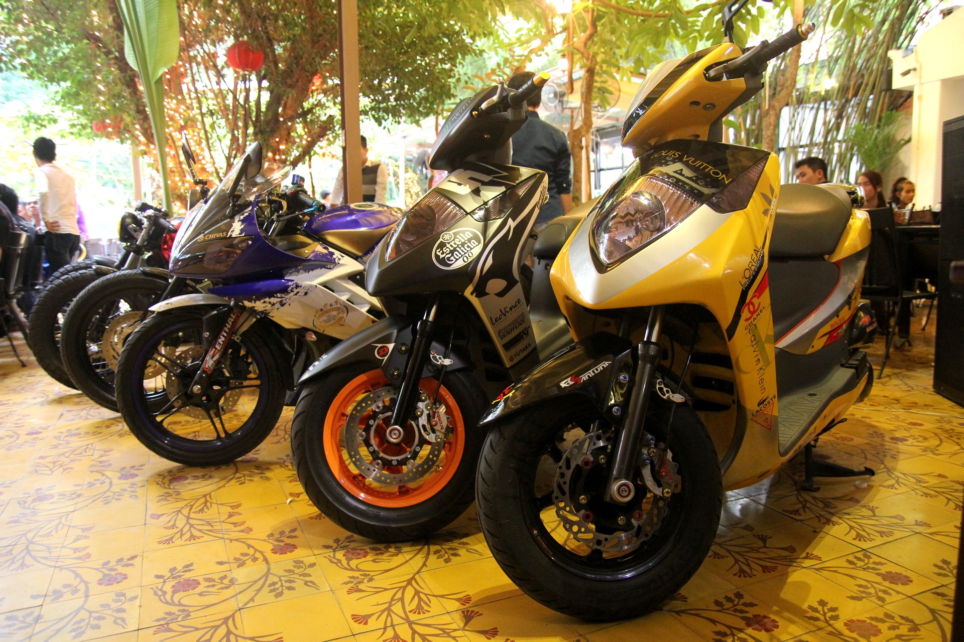 | Đây đều là những mẫu xe phổ thông tại Việt Nam như Honda Air Blade, Exciter hay Nouvo. Tuy nhiên, dưới bàn tay của những người thợ độ, mỗi chiếc xe mang một nét riêng. |